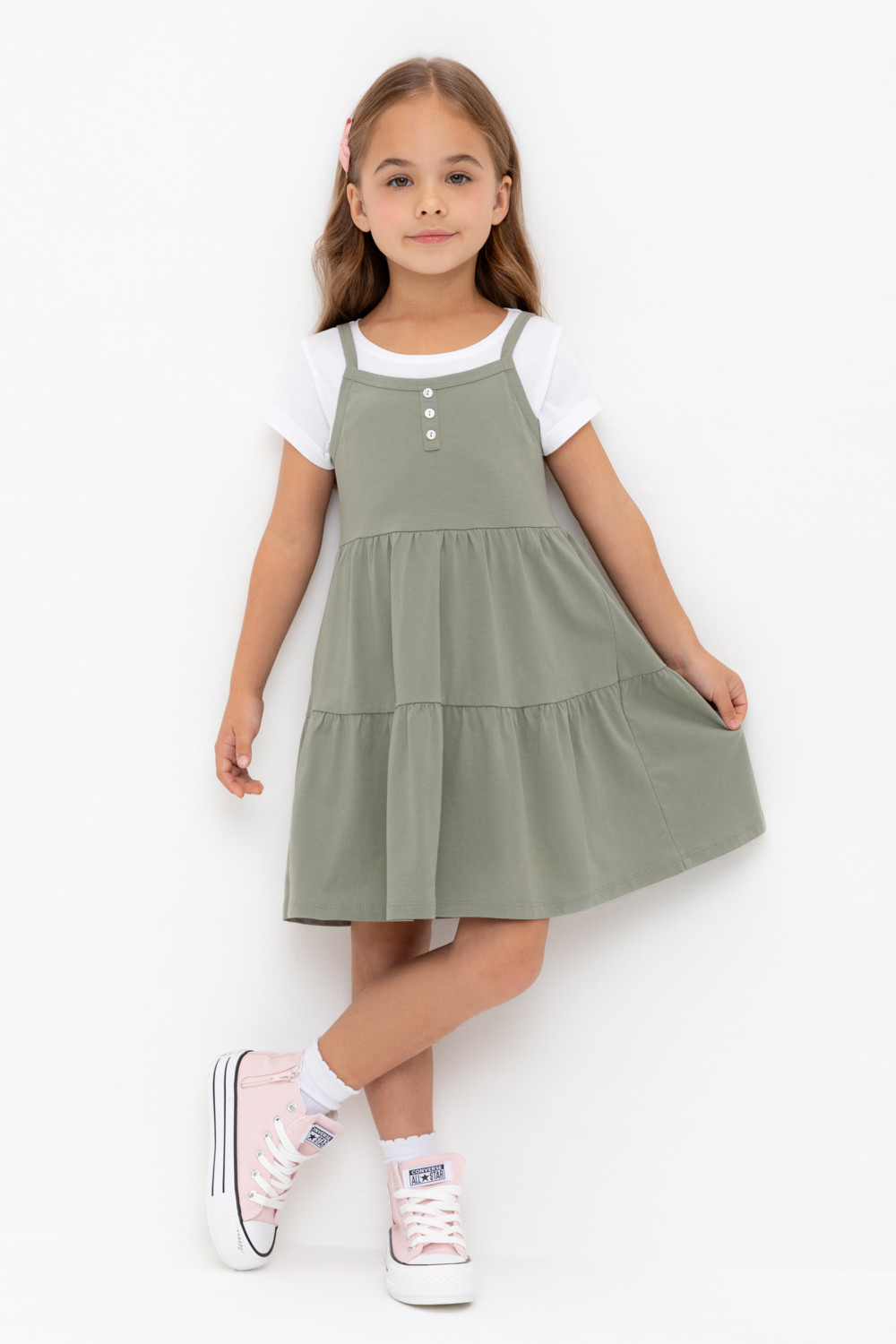 Летний сарафан на бретелях для девочки. Изготовлен из высококачественного трикотажного полотна. Изделие сохраняет цвет и форму после многократных стирок.