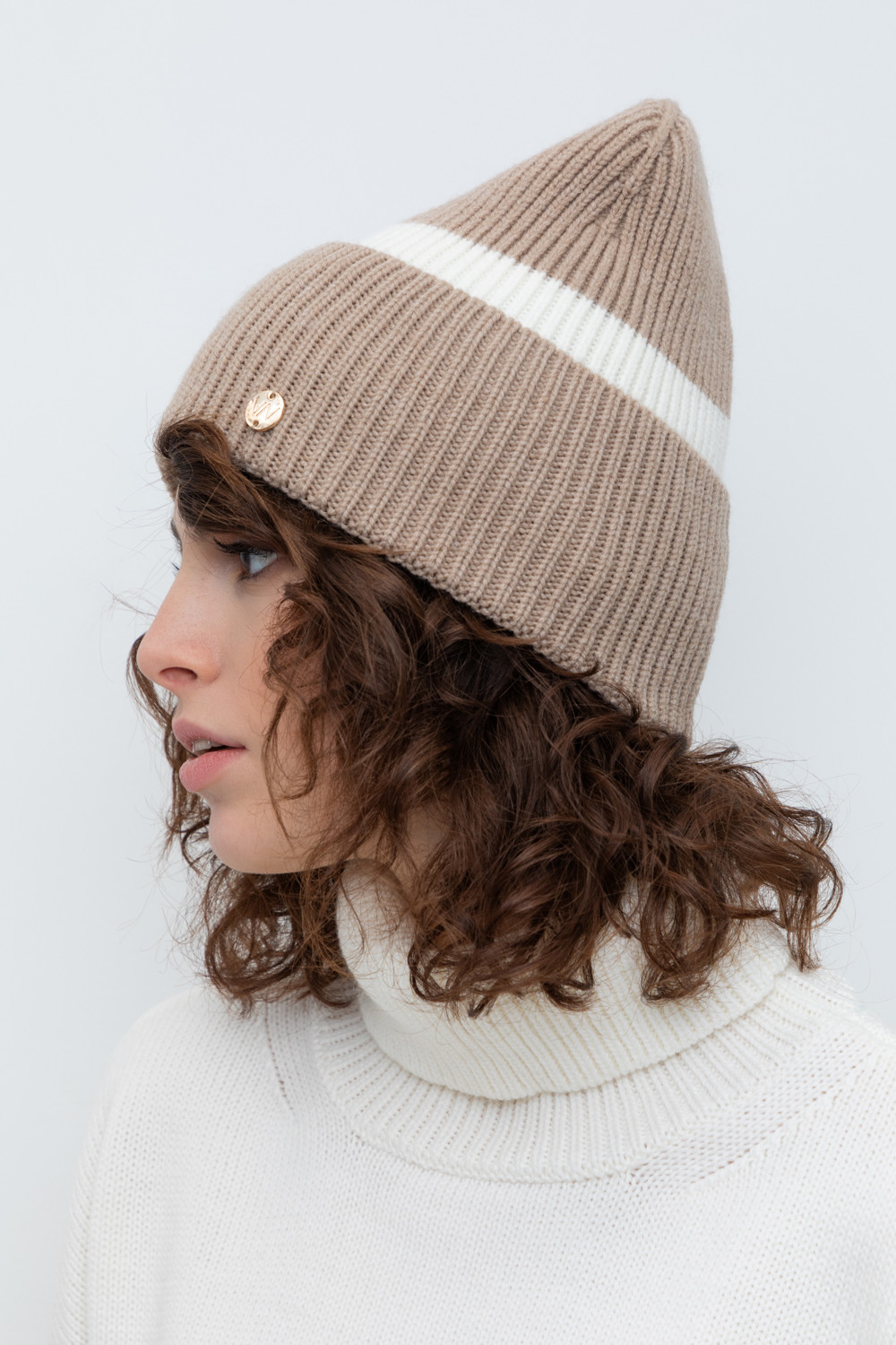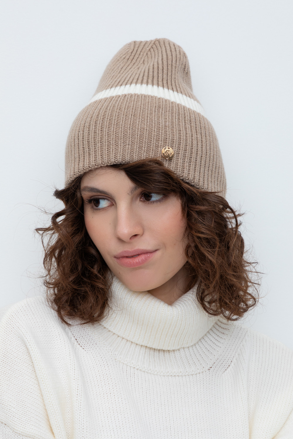 Уютная вязаная шапка с отворотом из шерсти и акрила. Шерсть хорошо сохраняет тепло, а волокна акрила делают шапку мягкой и предотвращают появление катышек. Лаконичный фасон аккуратно садится по форме головы и хорошо сочетается с верхней одеждой.