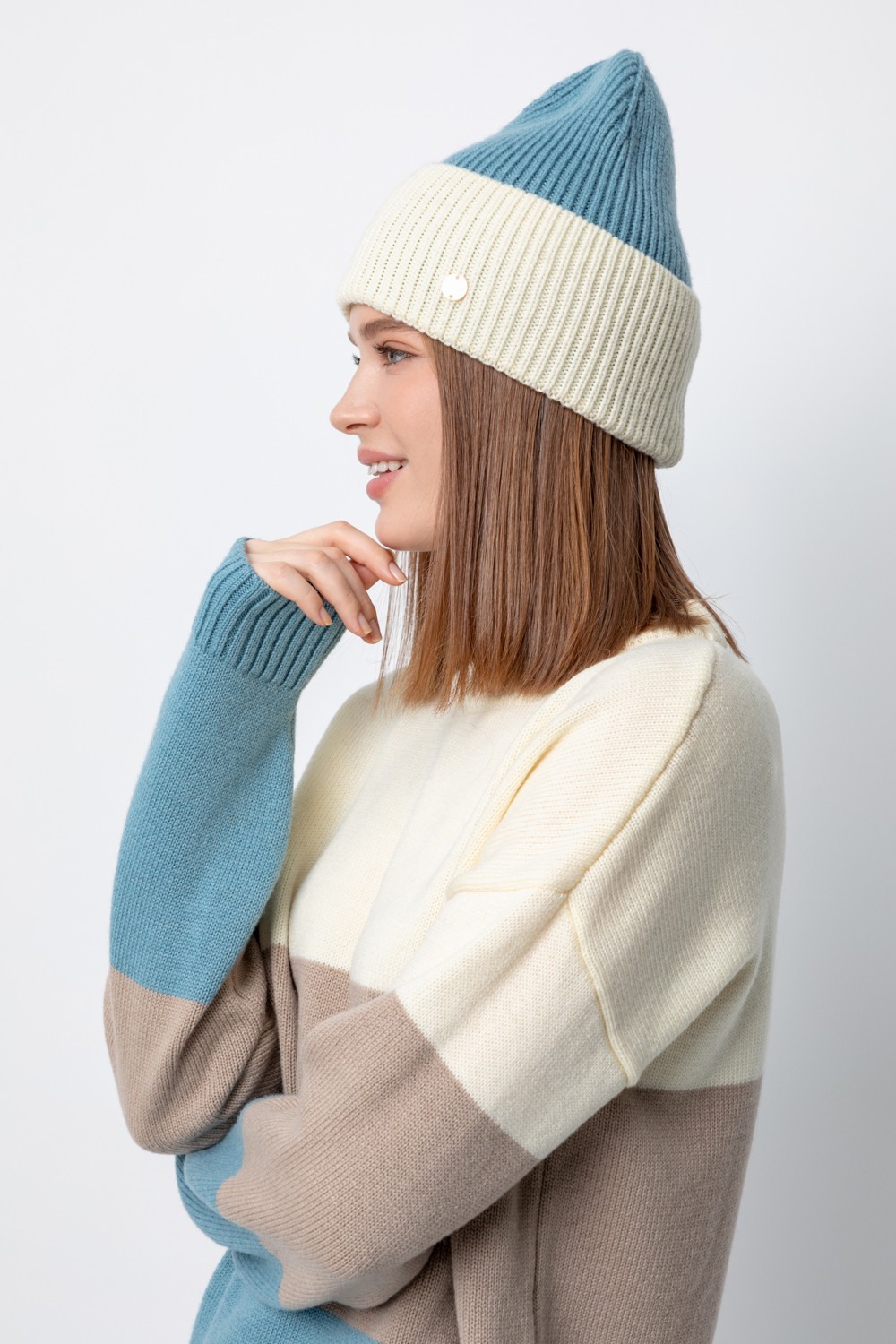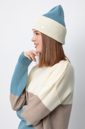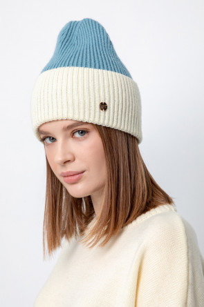 Уютная вязаная шапка с отворотом из шерсти и акрила. Шерсть хорошо сохраняет тепло, а волокна акрила делают шапку мягкой и предотвращают появление катышек. Лаконичный фасон аккуратно садится по форме головы и хорошо сочетается с верхней одеждой.