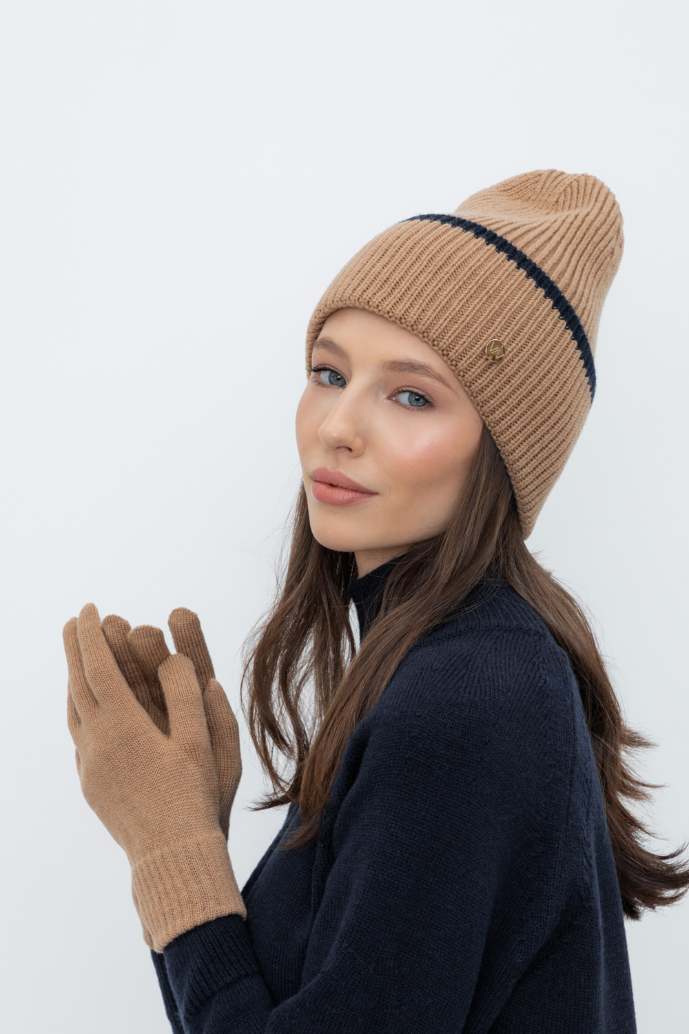 Уютная вязаная шапка с отворотом из шерсти и акрила. Шерсть мериноса хорошо сохраняет тепло, а волокна акрила делают шапку мягкой и предотвращают появление катышек. Лаконичный фасон аккуратно садится по форме головы и хорошо сочетается с верхней одеждой.