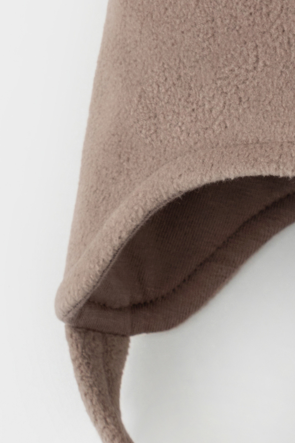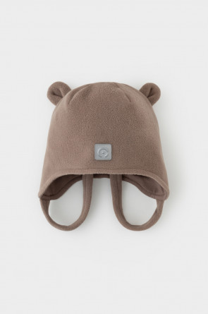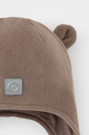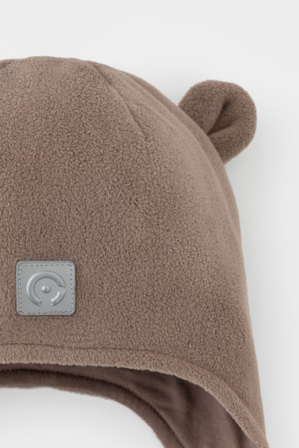 Флисовая шапка на завязках с мягким подкладом из натурального хлопка. Сверху украшена декоративными ушками из флиса. Спереди прикреплён светоотражатель, который обеспечивает дополнительную безопасность в тёмное время суток. Шапка сохраняет цвет и форму после многократных стирок.