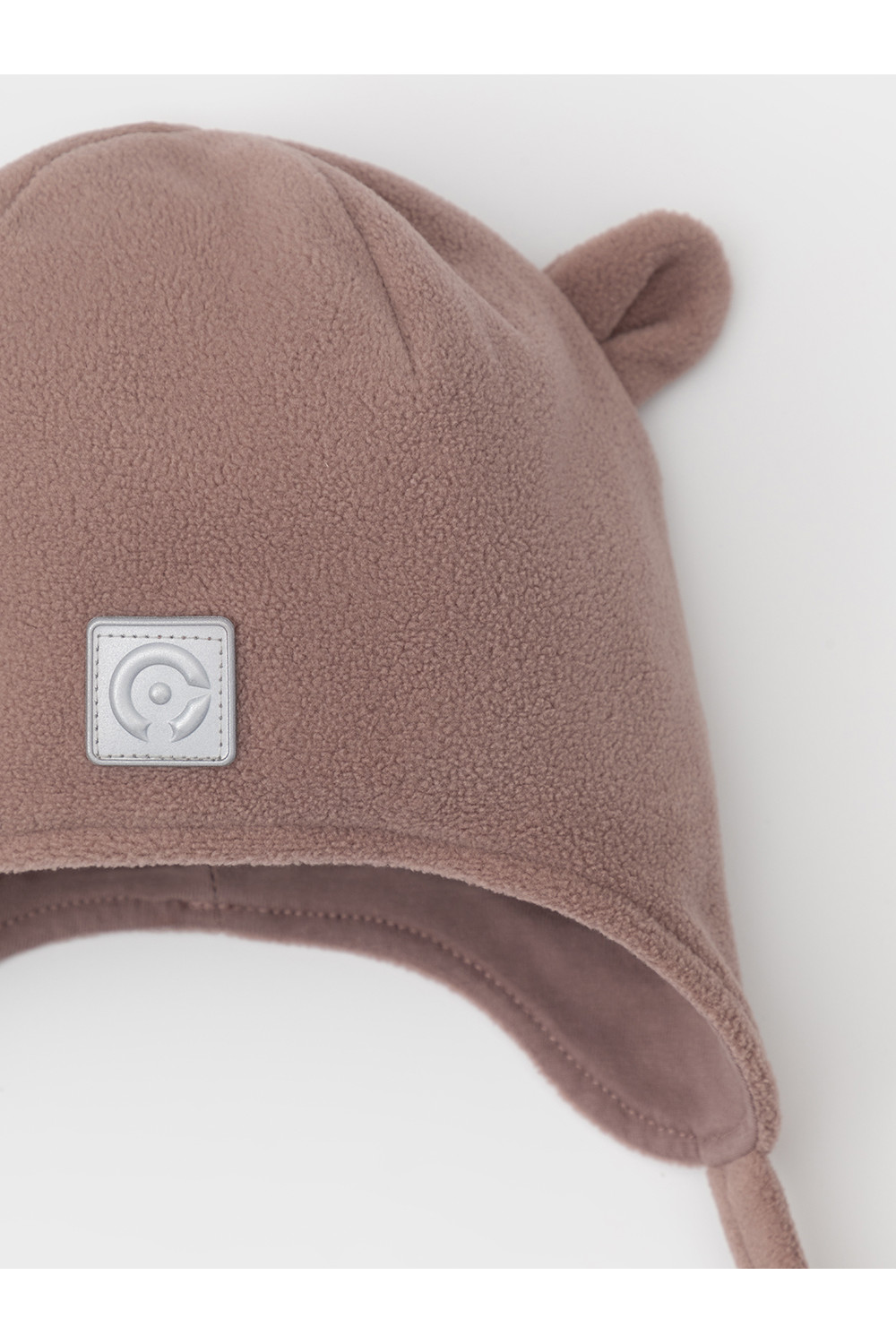 Флисовая шапка на завязках с мягким подкладом из натурального хлопка. Сверху украшена декоративными ушками из флиса. Спереди прикреплён светоотражатель, который обеспечивает дополнительную безопасность в тёмное время суток. Шапка сохраняет цвет и форму после многократных стирок.