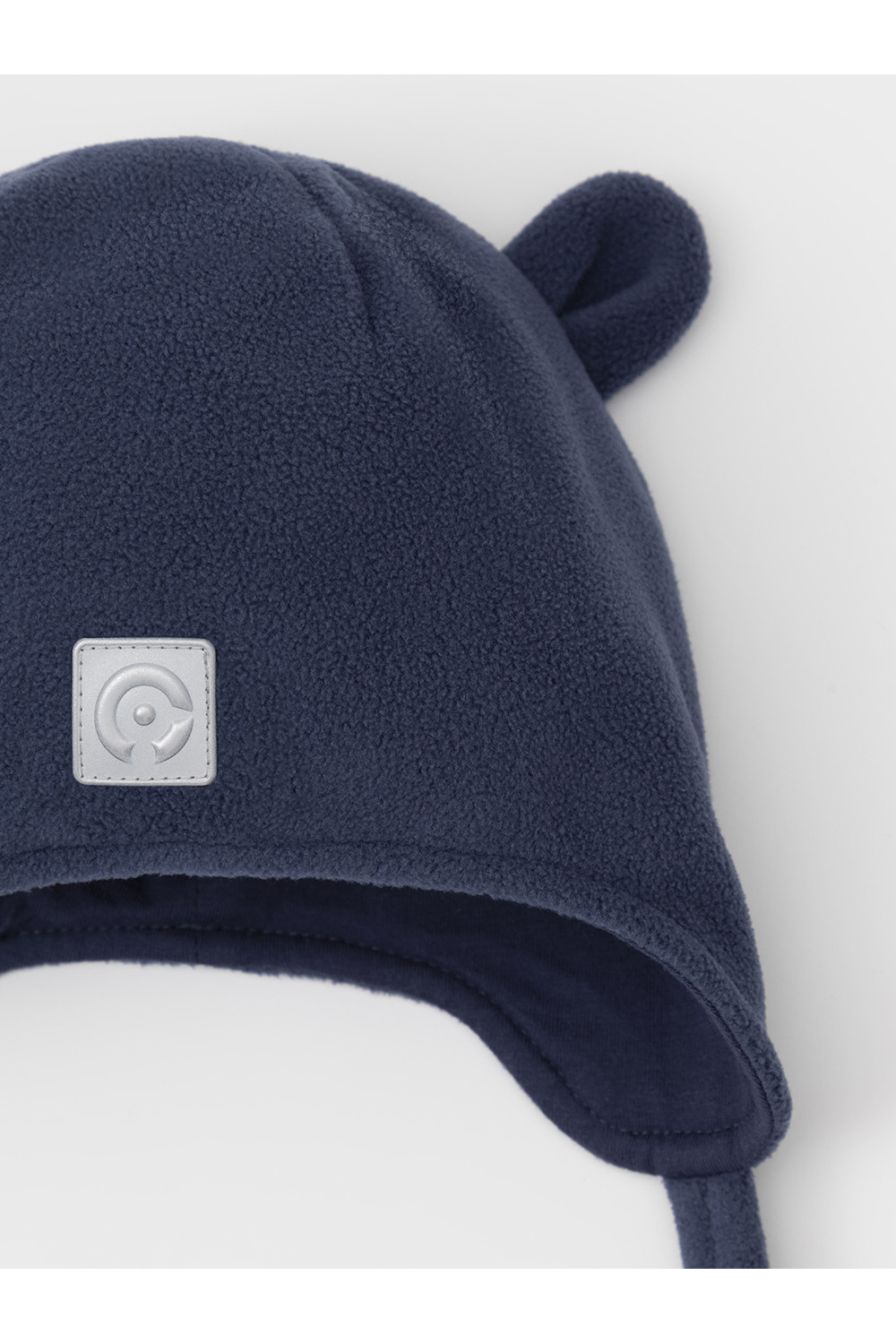 Флисовая шапка на завязках с мягким подкладом из натурального хлопка. Сверху украшена декоративными ушками из флиса. Спереди прикреплён светоотражатель, который обеспечивает дополнительную безопасность в тёмное время суток. Шапка сохраняет цвет и форму после многократных стирок.