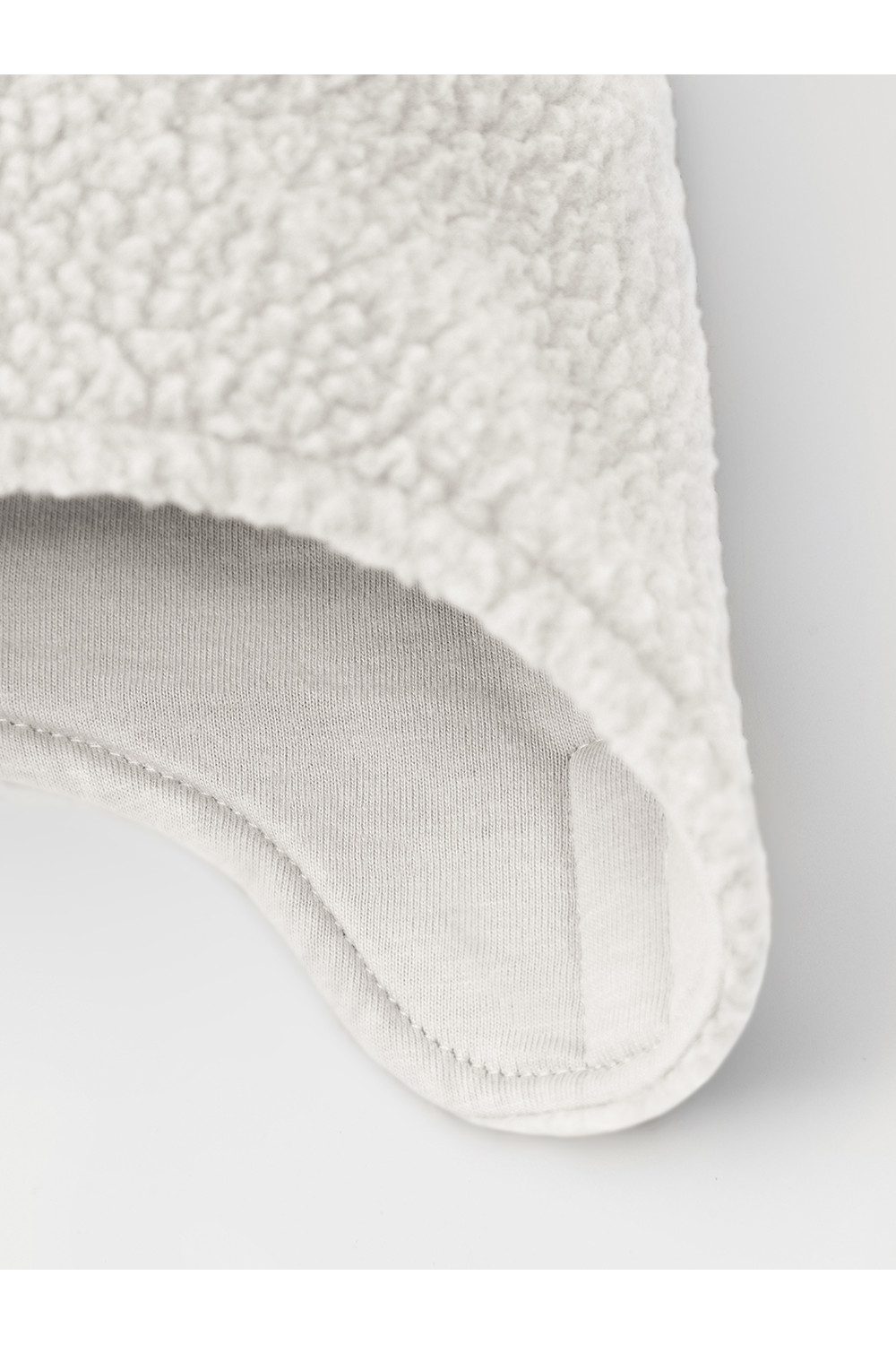 Флисовая шапка на завязках с мягким подкладом из натурального хлопка. Сверху украшена декоративными ушками из флиса. Спереди прикреплён светоотражатель, который обеспечивает дополнительную безопасность в тёмное время суток. Шапка сохраняет цвет и форму после многократных стирок.