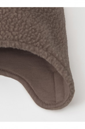 Флисовая шапка на завязках с мягким подкладом из натурального хлопка. Сверху украшена декоративными ушками из флиса. Спереди прикреплён светоотражатель, который обеспечивает дополнительную безопасность в тёмное время суток. Шапка сохраняет цвет и форму после многократных стирок.