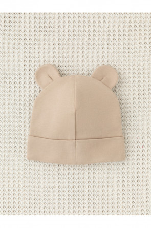 Шапка с отворотом для новорождённых из мягкого эластичного трикотажа интерлок, произведённого из натурального хлопка. Украшена декоративными ушками. Все трикотажные полотна производятся в соответствии с нормами Швейцарского сертификата ЭкоТекс.