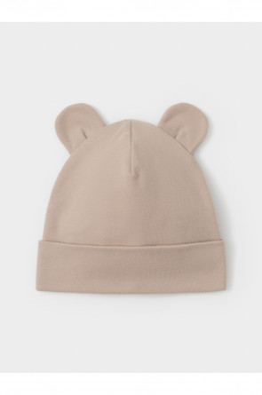 Шапка с отворотом для новорождённых из мягкого эластичного трикотажа интерлок, произведённого из натурального хлопка. Украшена декоративными ушками. Все трикотажные полотна производятся в соответствии с нормами швейцарского сертификата ЭкоТекс.