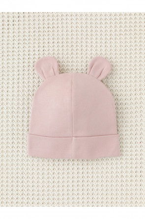 Шапка с отворотом для новорождённых из мягкого эластичного трикотажа интерлок, произведённого из натурального хлопка. Украшена декоративными ушками. Все трикотажные полотна производятся в соответствии с нормами Швейцарского сертификата ЭкоТекс.
