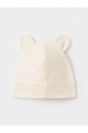 Шапка с отворотом для новорождённых из мягкого эластичного трикотажа интерлок, произведённого из натурального хлопка. Украшена декоративными ушками. Все трикотажные полотна производятся в соответствии с нормами швейцарского сертификата ЭкоТекс.