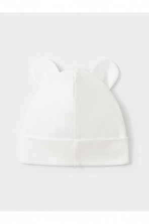 Шапка с отворотом для новорождённых из мягкого эластичного трикотажа интерлок, произведённого из натурального хлопка. Украшена декоративными ушками. Все трикотажные полотна производятся в соответствии с нормами швейцарского сертификата ЭкоТекс.