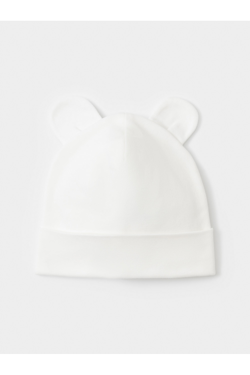 Шапка с отворотом для новорождённых из мягкого эластичного трикотажа интерлок, произведённого из натурального хлопка. Украшена декоративными ушками. Все трикотажные полотна производятся в соответствии с нормами швейцарского сертификата ЭкоТекс.