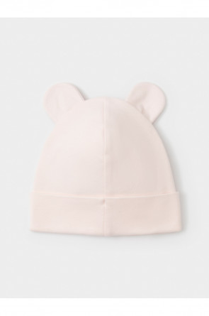 Шапка с отворотом для новорождённых из мягкого эластичного трикотажа интерлок, произведённого из натурального хлопка. Украшена декоративными ушками. Все трикотажные полотна производятся в соответствии с нормами швейцарского сертификата ЭкоТекс.