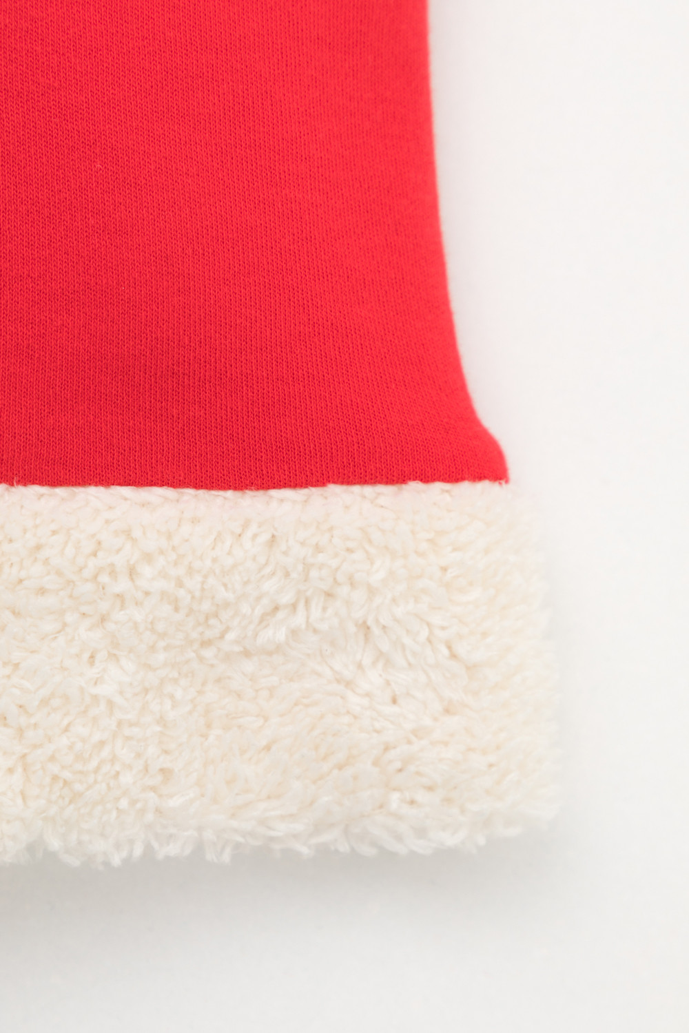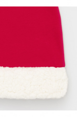 Новогодняя шапка — красный колпак из эластичного гладкого полотна интерлок. Материал произведён из высококачественного натурального хлопка. По краю шапочка украшена мягкой пушистой отделкой из белого длинноворсового флиса. Аксессуар отлично подойдёт для создания праздничных образов или в качестве дополнения к подарку на Новый год и Рождество. Изделие сохраняет цвет и форму после многократных стирок. Все трикотажные полотна производятся в соответствии с нормами швейцарского сертификата ЭкоТекс.