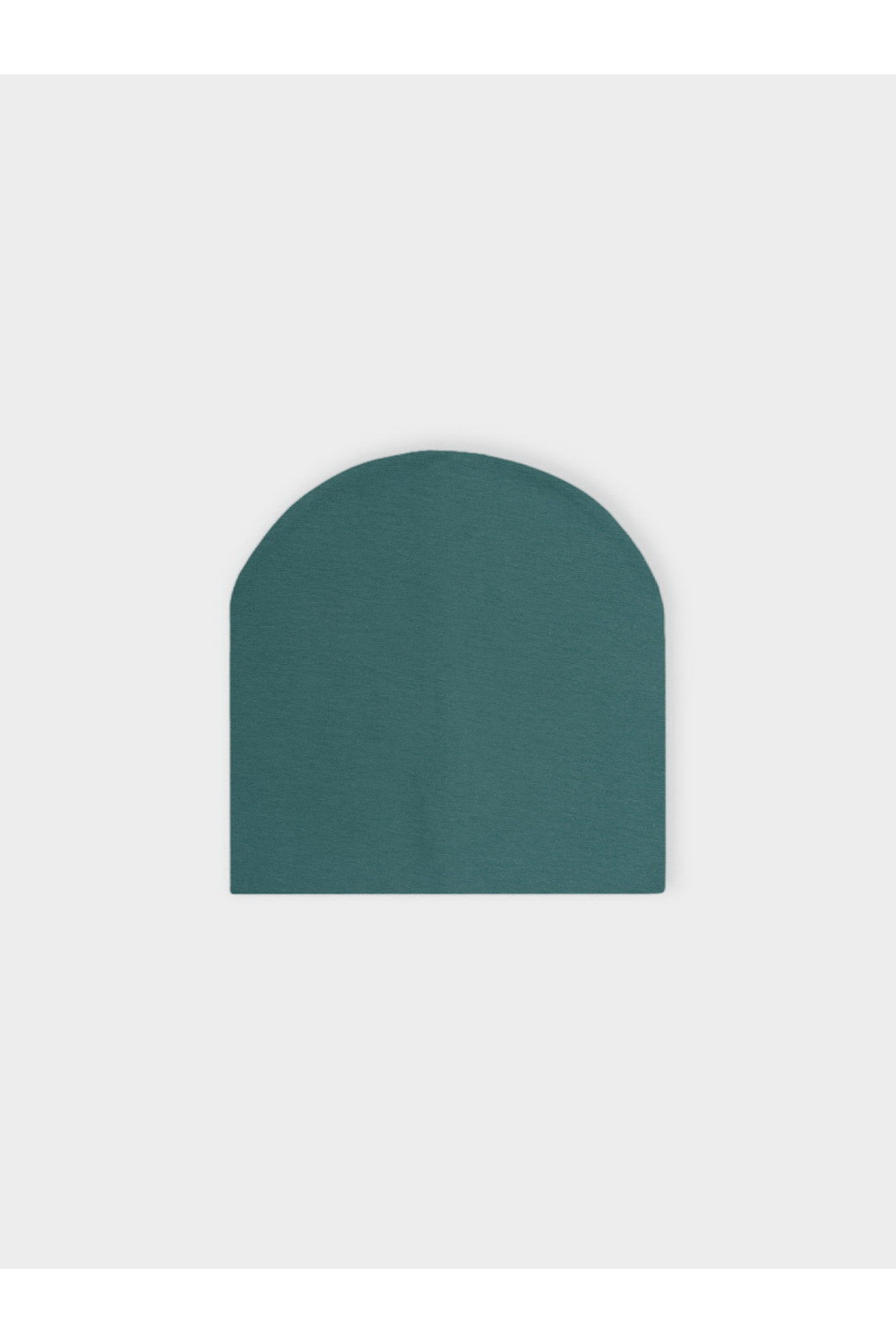 Шапочка из однотонного эластичного трикотажа, двойная. Удлиненная скругленная макушка.