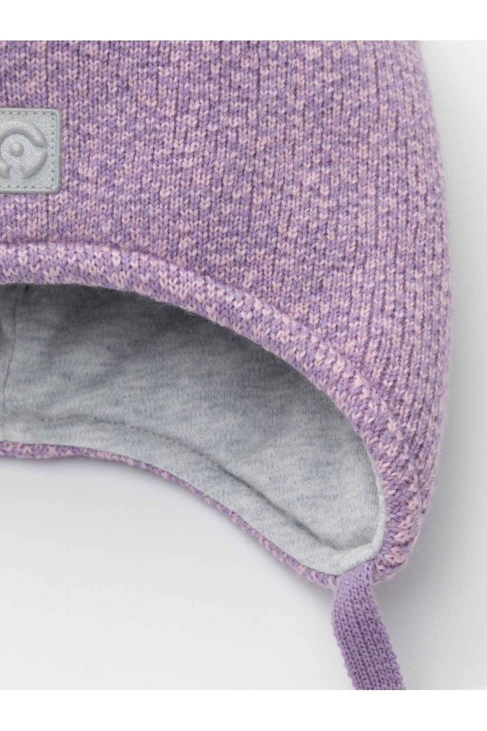 Шапка из полушерсти на завязках с синтепоновым утеплителем. Подклад из натурального хлопка. Полностью закрывает голову, уши и шею, защищая ребёнка от холодного воздуха и ветра. На макушке помпон. Изделие сохраняет форму и стойкий цвет после многочисленных стирок.