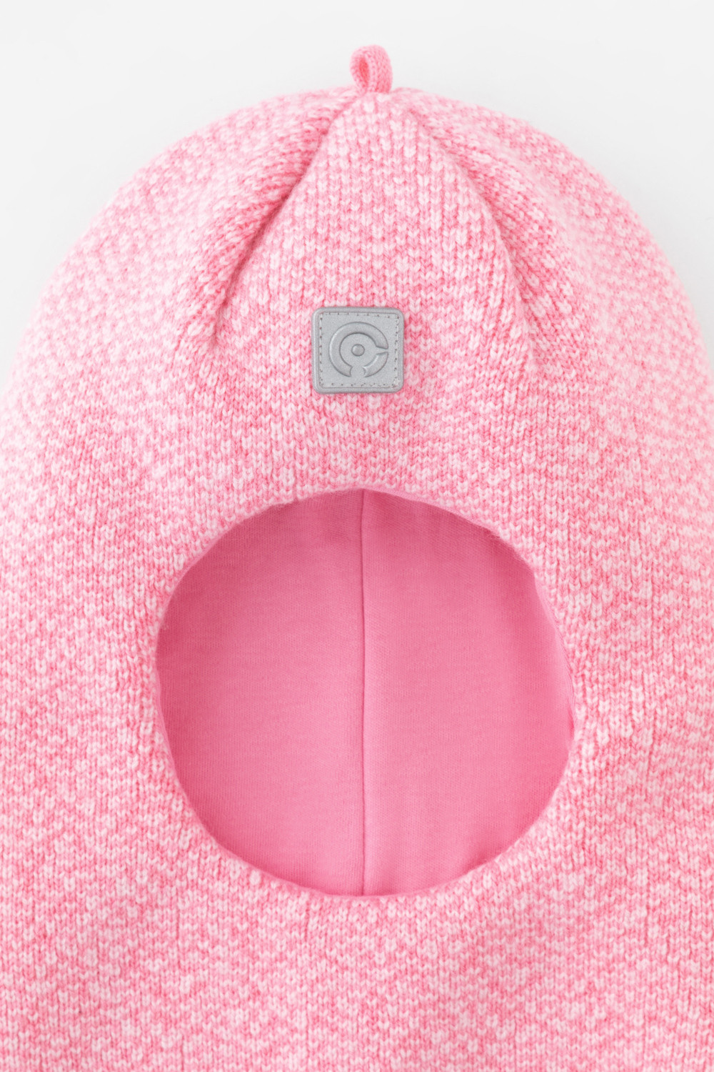Шапка-шлем для девочки с подкладом из хлопкового трикотажа. Верх выполнен из полушерстяной пряжи. Светоотражающая нашивка спереди обеспечивает безопасность в темное время суток. Изделие сохраняет форму и стойкий цвет после многочисленных стирок.