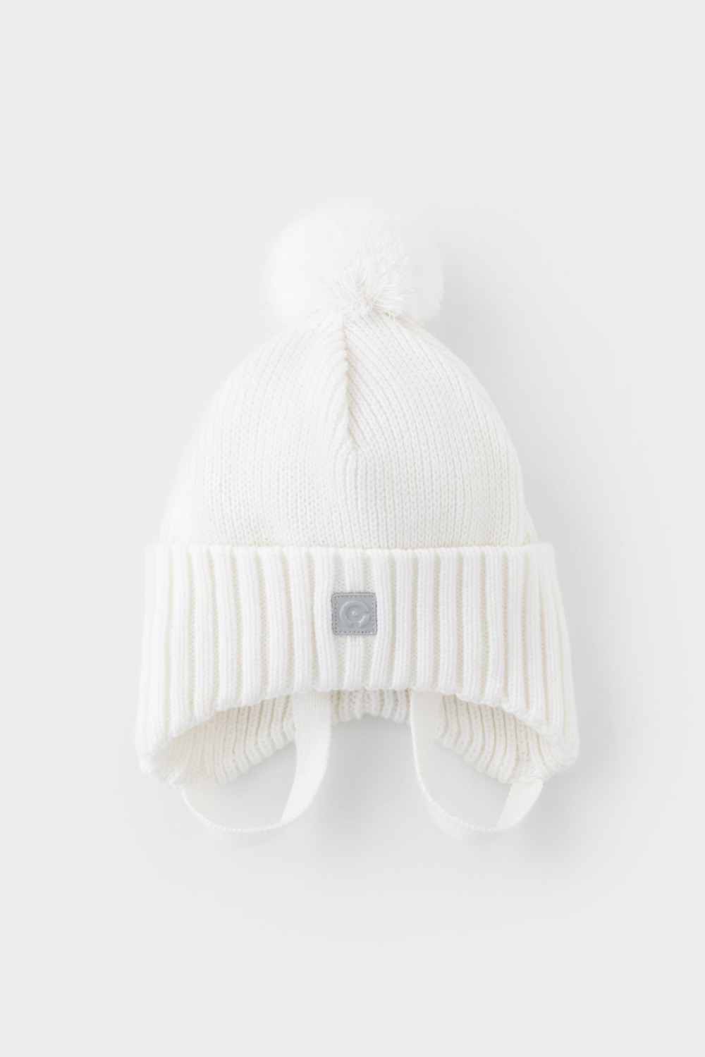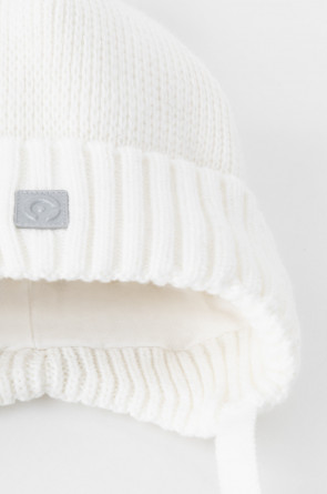 Тёплая зимняя шапка с подкладом из хлопкового трикотажа. Верх выполнен из полушерстяной пряжи. На макушке помпон. Светоотражающая нашивка спереди обеспечивает безопасность в темное время суток.