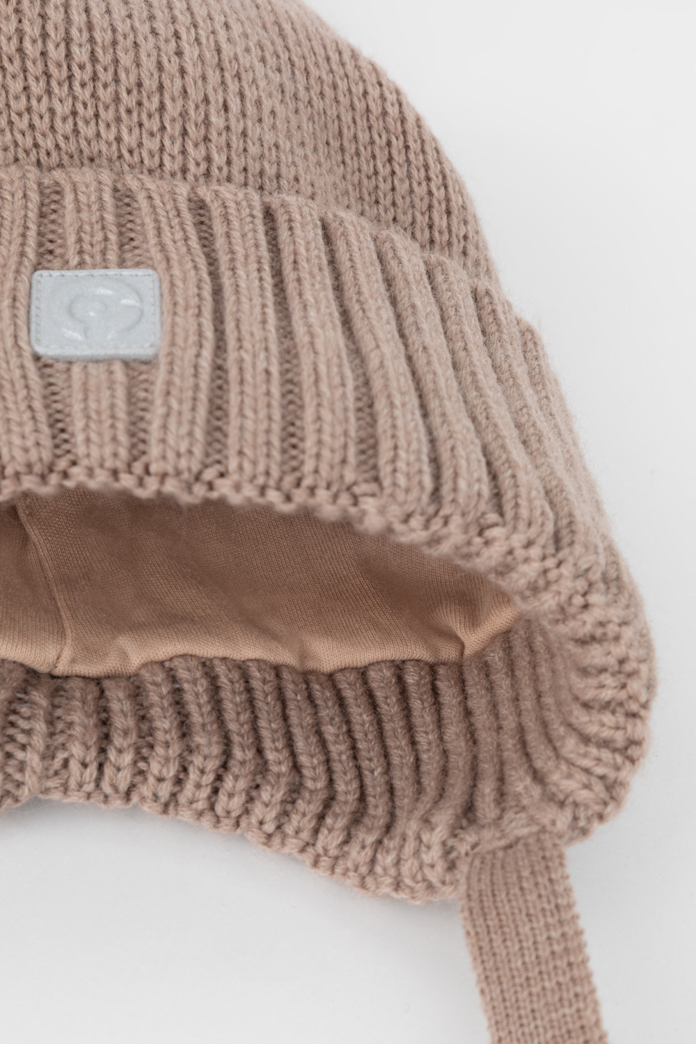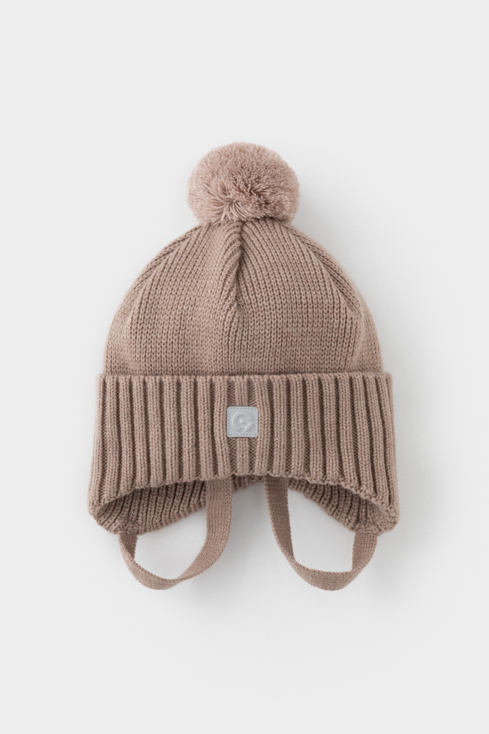 Тёплая зимняя шапка с подкладом из хлопкового трикотажа. Верх выполнен из полушерстяной пряжи. На макушке помпон. Светоотражающая нашивка спереди обеспечивает безопасность в темное время суток.