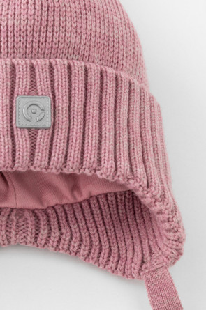 Тёплая зимняя шапка с подкладом из хлопкового трикотажа. Верх выполнен из полушерстяной пряжи. На макушке помпон. Светоотражающая нашивка спереди обеспечивает безопасность в темное время суток.