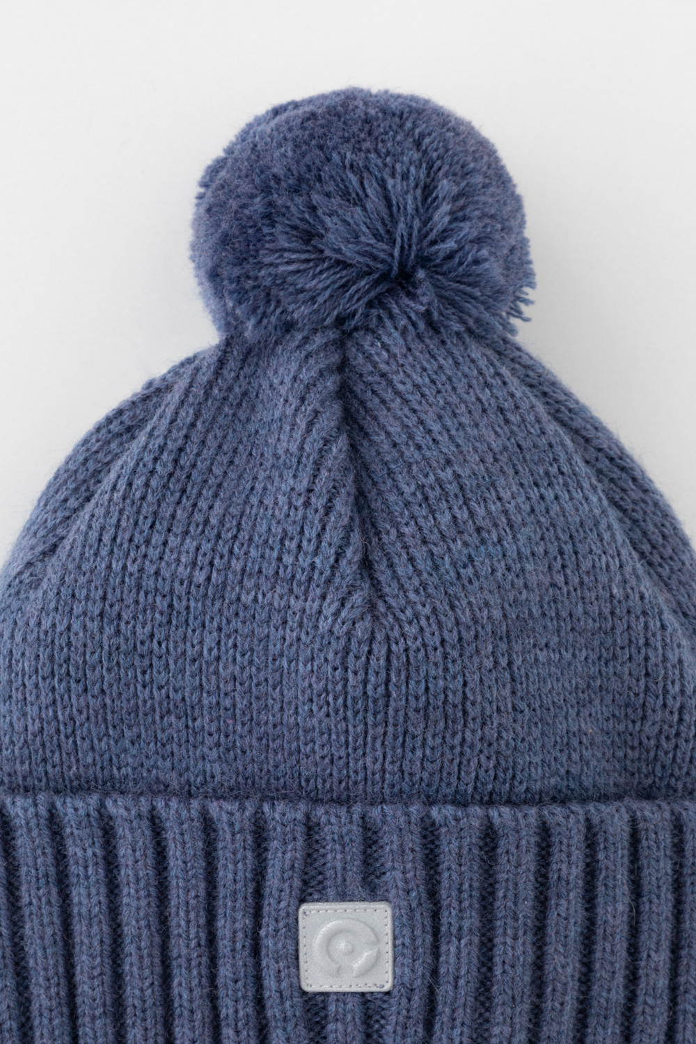 Тёплая зимняя шапка с подкладом из хлопкового трикотажа. Верх выполнен из полушерстяной пряжи. На макушке помпон. Светоотражающая нашивка спереди обеспечивает безопасность в темное время суток.