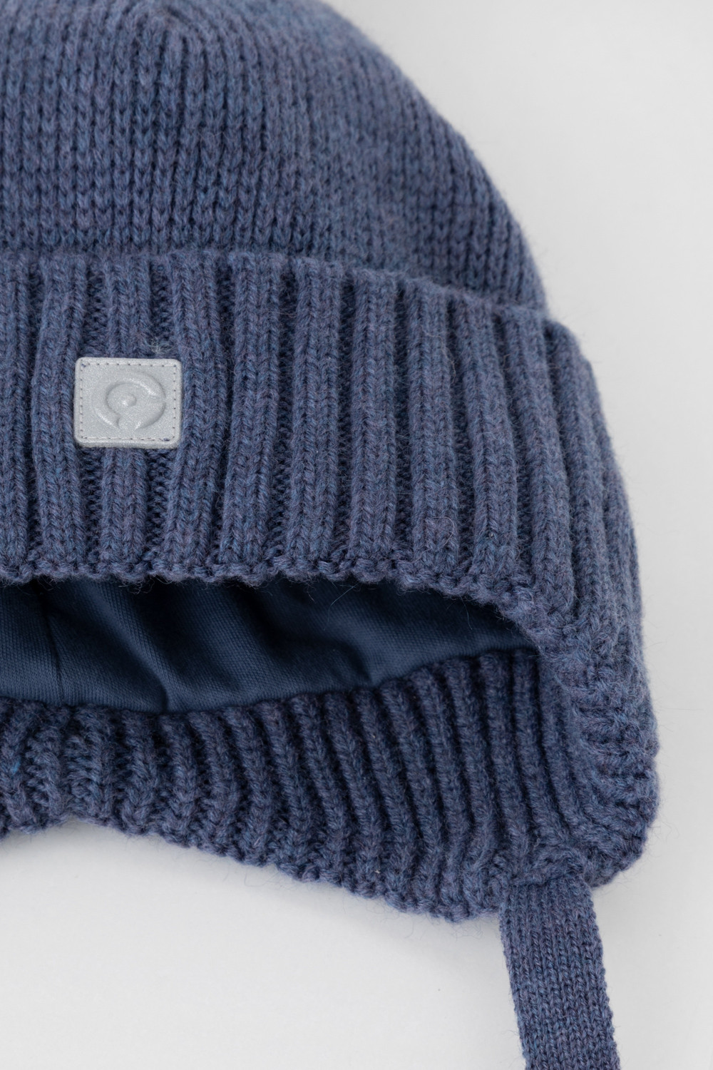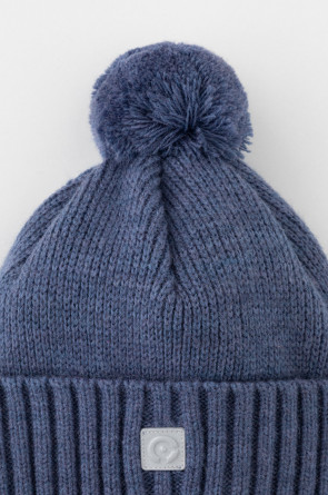 Тёплая зимняя шапка с подкладом из хлопкового трикотажа. Верх выполнен из полушерстяной пряжи. На макушке помпон. Светоотражающая нашивка спереди обеспечивает безопасность в темное время суток.