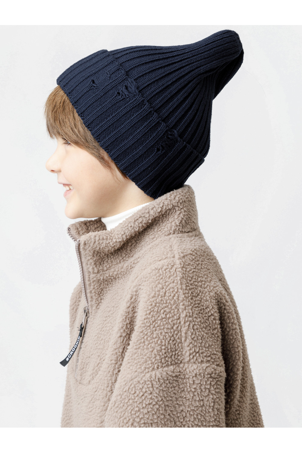 Стильная демисезонная шапка с декоративными разрывами. Изготовлена из высококачественной пряжи, в состав которой входят хлопок и акрил. Комфортно прилегает к голове, обеспечивая защиту от холода и хороший теплообмен. Изделие хорошо переносит многократные стирки, сохраняя цвет и форму.