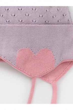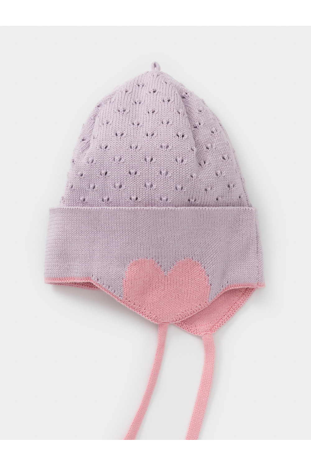 Демисезонная шапка с ажурными сердечками на завязках. Внутри мягкий подклад из гладкого трикотажа интерлок. Изготовлена из высококачественного хлопка с добавлением акрила. Комфортно прилегает к голове, обеспечивая защиту от холода и хороший теплообмен. Изделие хорошо переносит многократные стирки, сохраняя цвет и форму.