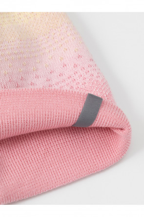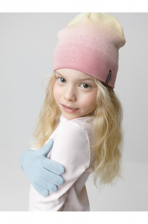 Демисезонная шапка для девочки из смесовой пряжи с добавлением высококачественного гребенного хлопка. Шапка двойная с вывязанным узором. Комфортное прилегание, высококачественные материалы обеспечивают защиту от холода и хороший теплообмен.