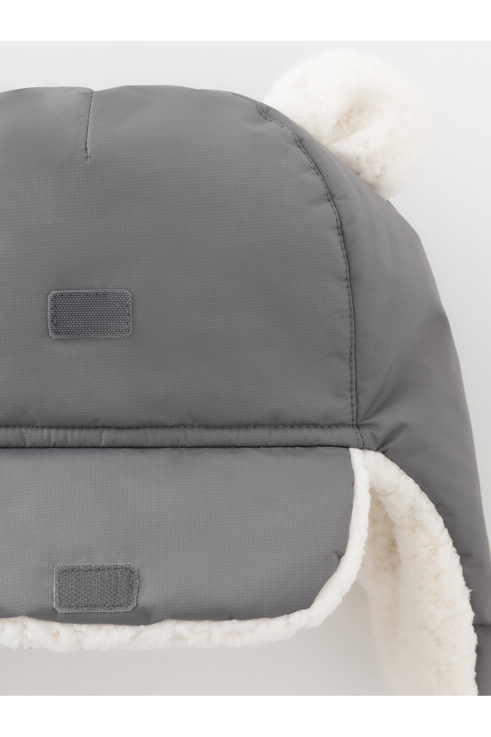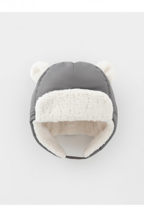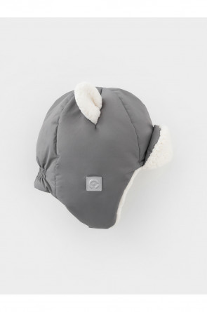 Зимняя шапка детская из однотонной мембранной ткани с декоративными ушками. Внутри искусственный утеплитель и подклад из мягкого длинноворсового флиса. Застёгивается под подбородком на липучку. Спереди отворот на липучке. На затылке эластичная резинка. Сбоку прикреплён светоотражатель.