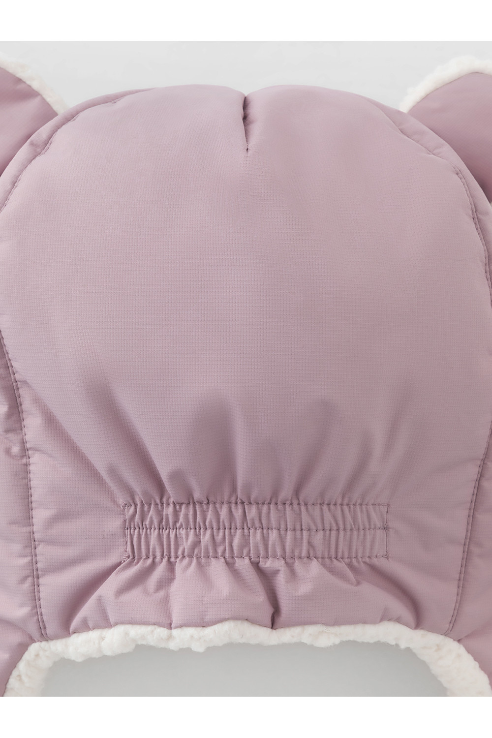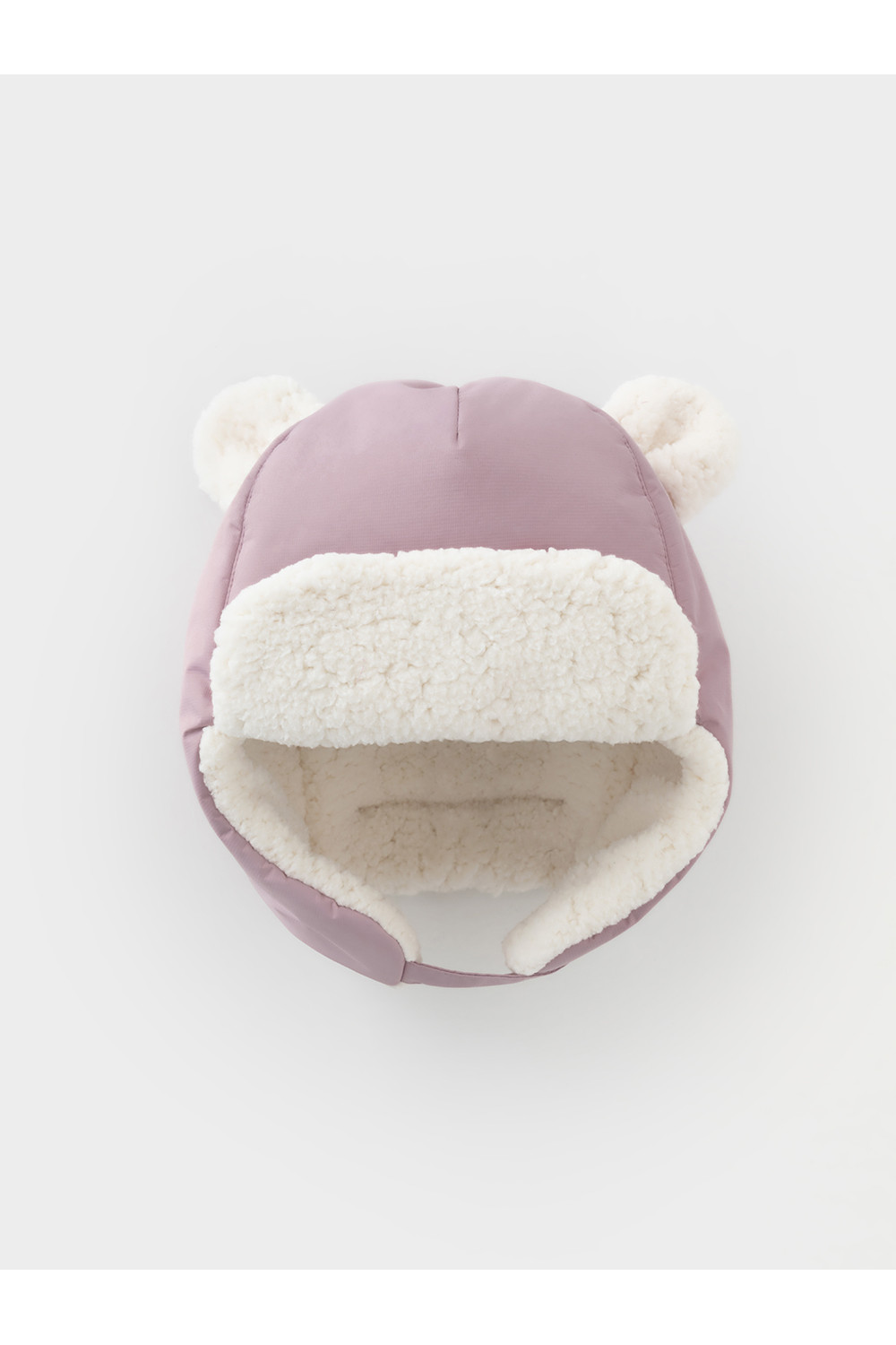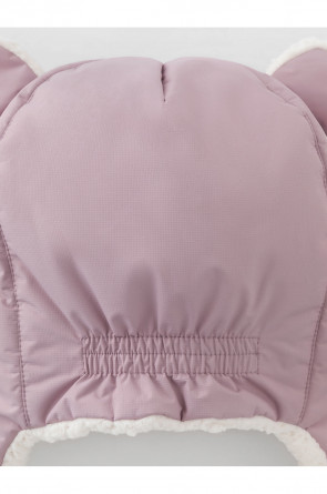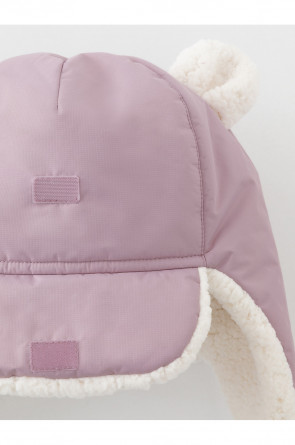Зимняя шапка детская из однотонной мембранной ткани с декоративными ушками. Внутри искусственный утеплитель и подклад из мягкого длинноворсового флиса. Застёгивается под подбородком на липучку. Спереди отворот на липучке. На затылке эластичная резинка. Сбоку прикреплён светоотражатель.