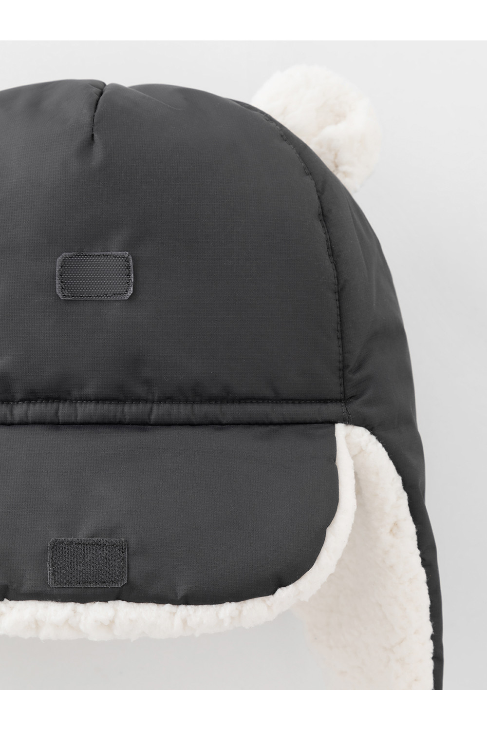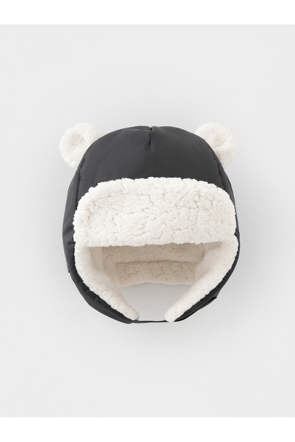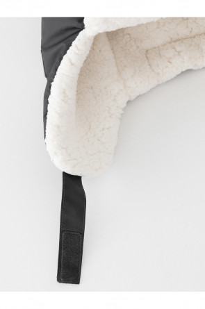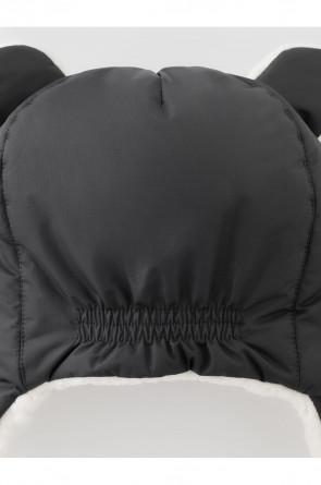 Зимняя шапка детская из однотонной мембранной ткани с декоративными ушками. Внутри искусственный утеплитель и подклад из мягкого длинноворсового флиса. Застёгивается под подбородком на липучку. Спереди отворот на липучке. На затылке эластичная резинка. Сбоку прикреплён светоотражатель.