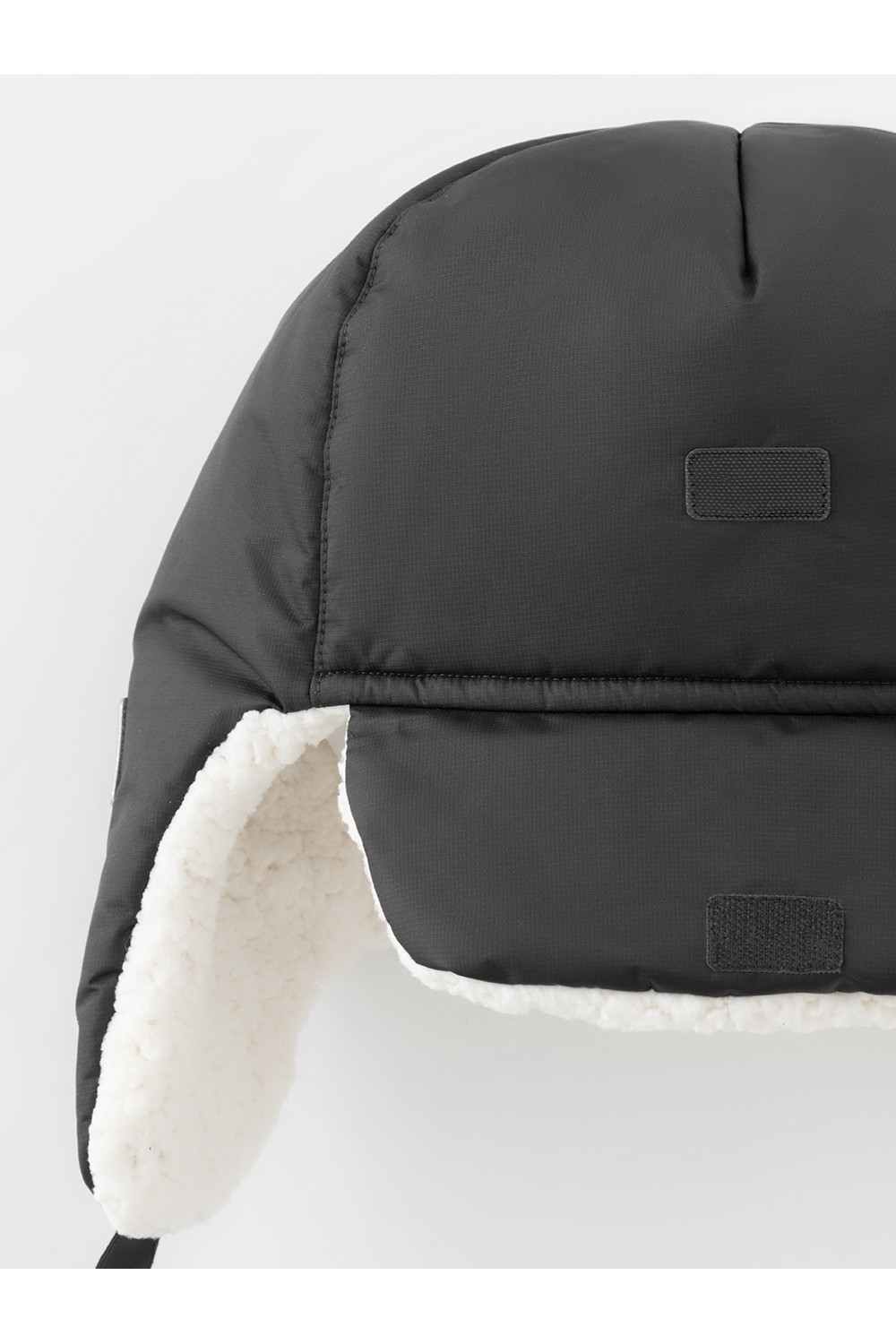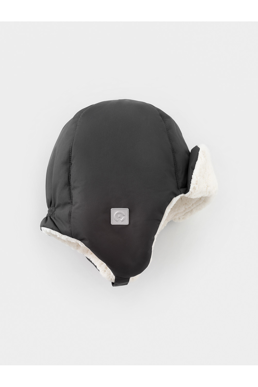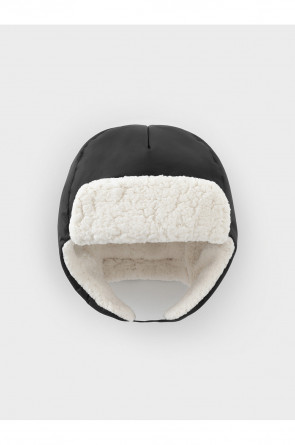 Зимняя шапка детская из однотонной мембранной ткани. Внутри искусственный утеплитель и подклад из мягкого длинноворсового флиса. Застёгивается под подбородком на липучку. Спереди отворот на липучке. На затылке эластичная резинка. Сбоку прикреплён светоотражатель.
