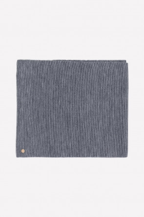 Однотонный вязаный шарф. Связан резинкой. Украшен металлическим значком с тиснёнными буквами VN и фирменной этикеткой.