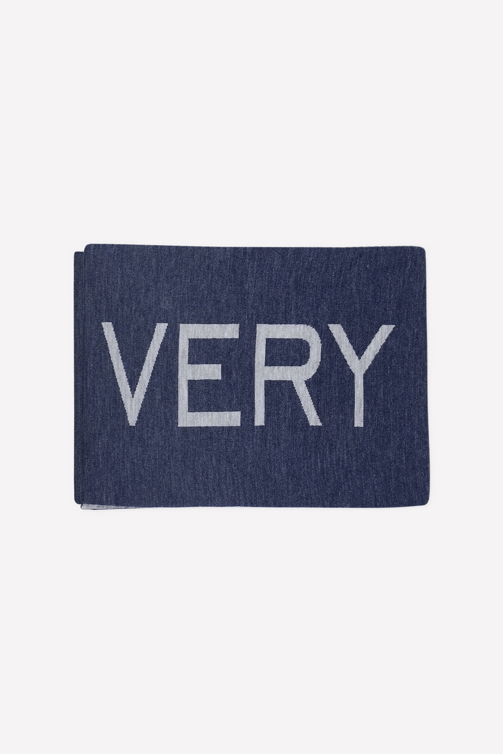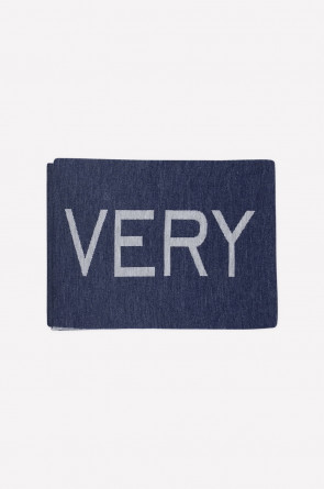 Двусторонний шарф из полушерсти с вывязанным рисунком в виде надписи VERY NEAT. Длина - 200 см, ширина - 40 см. Связан гладью. Украшен фирменной этикеткой.