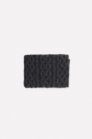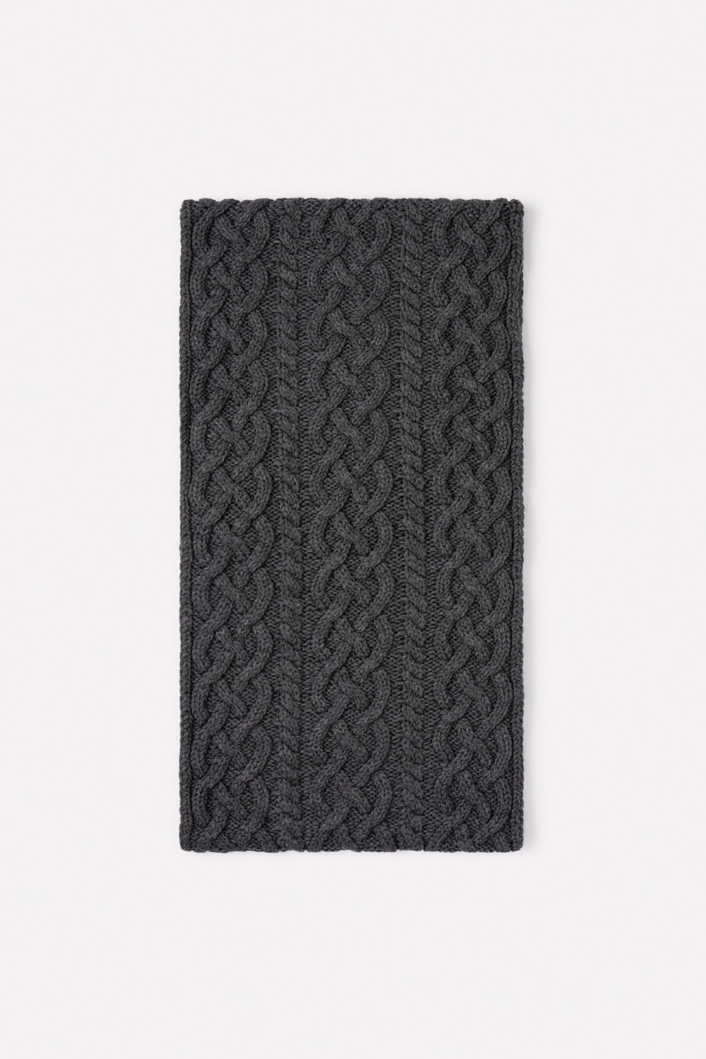 Стильный снуд из полушерсти с вязаным узором из кос. Защитит горло и согреет ребёнка во время прогулки.