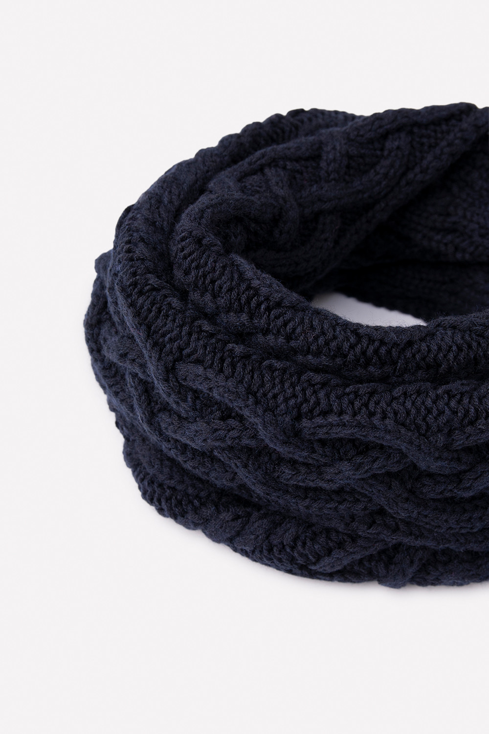Стильный снуд из полушерсти с вязаным узором из кос. Защитит горло и согреет ребёнка во время прогулки.