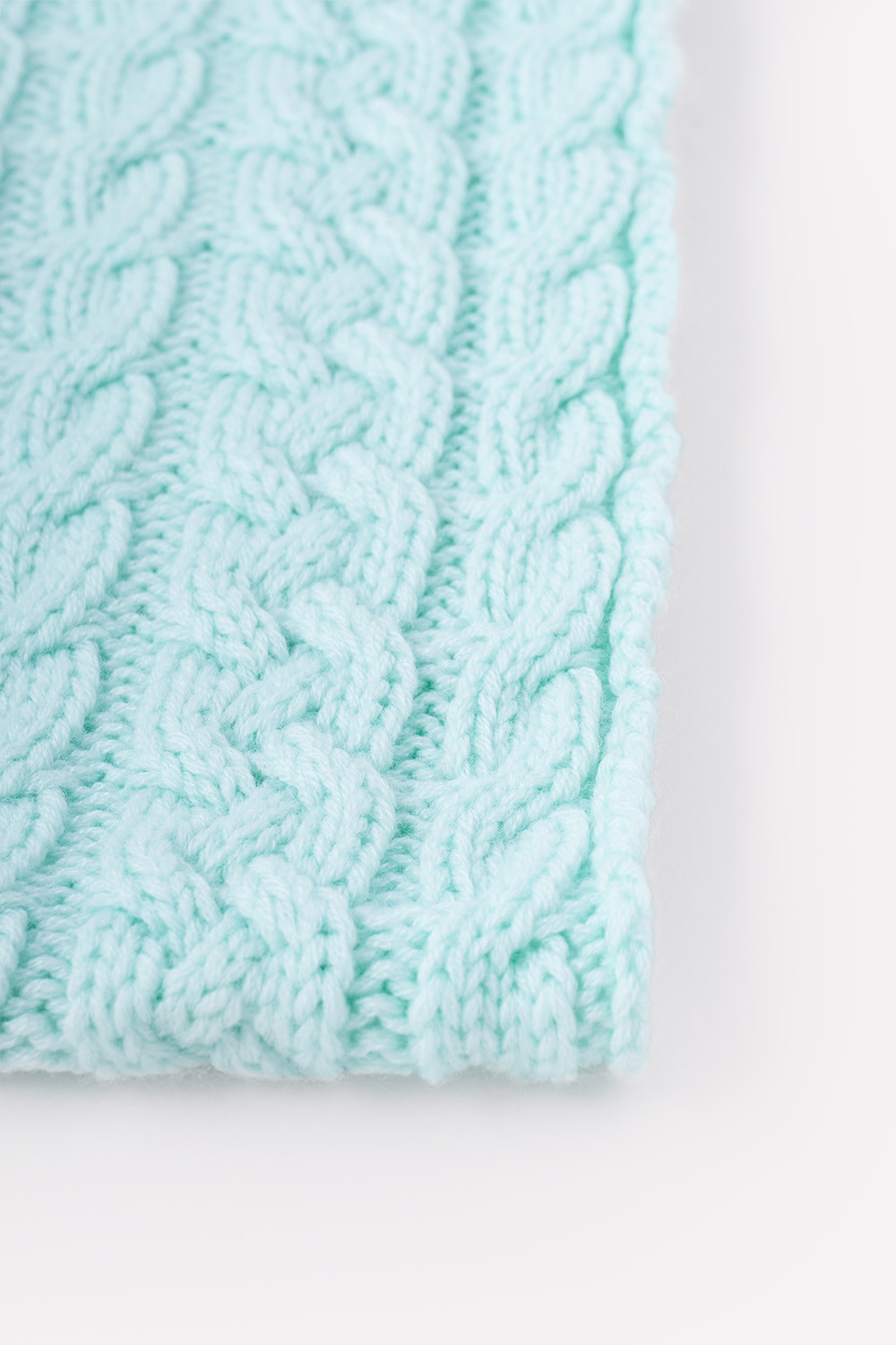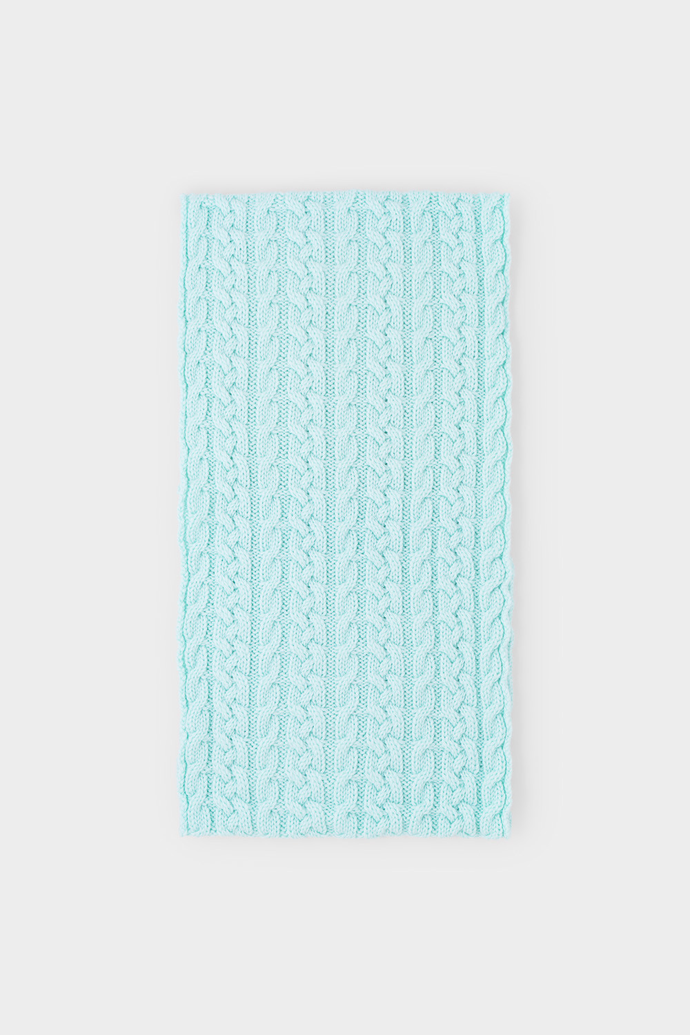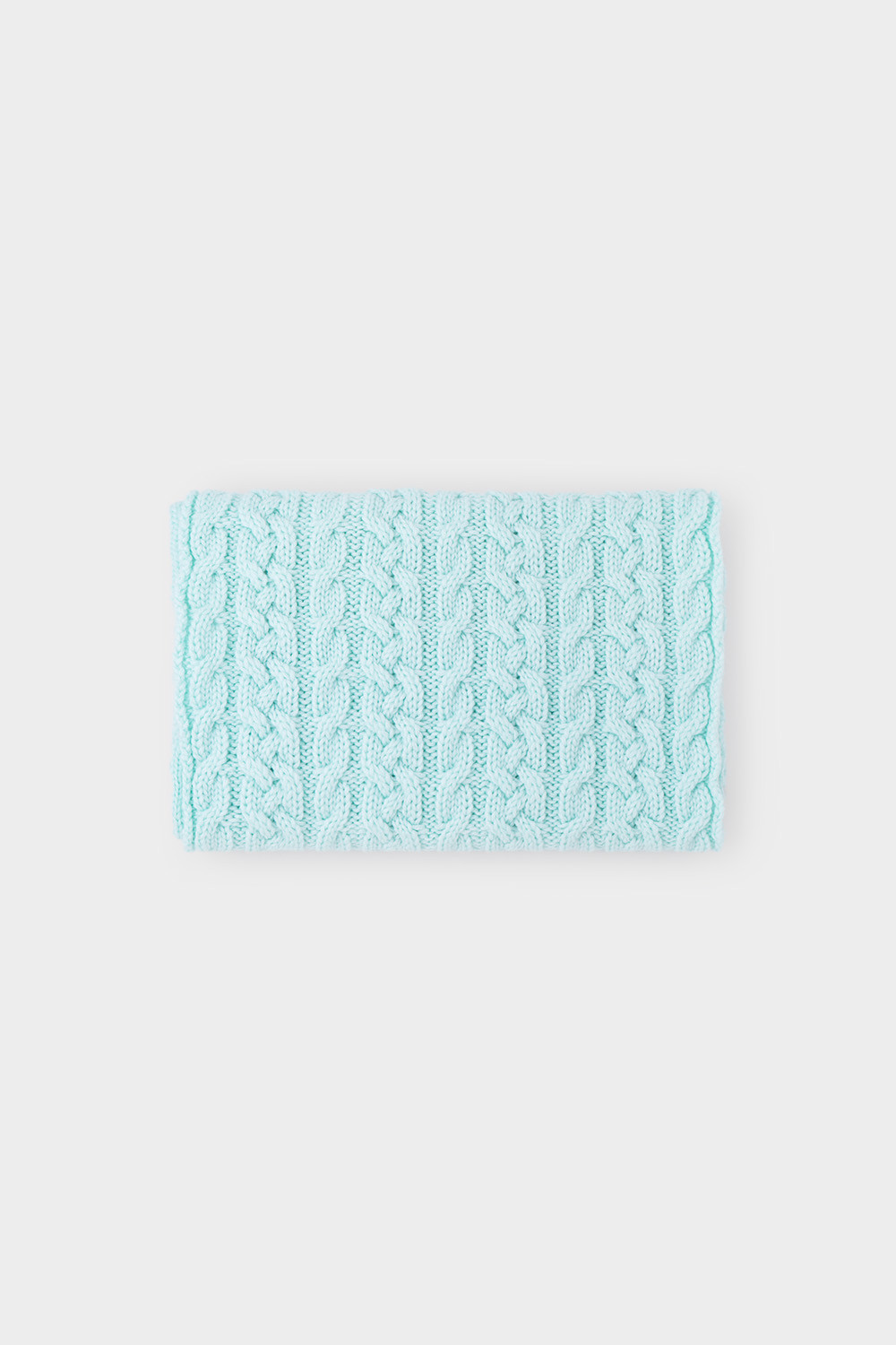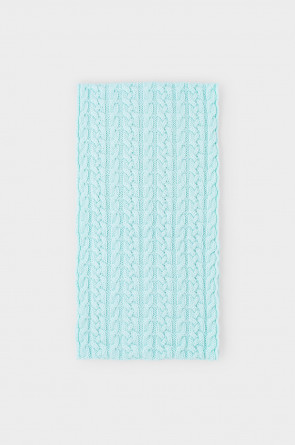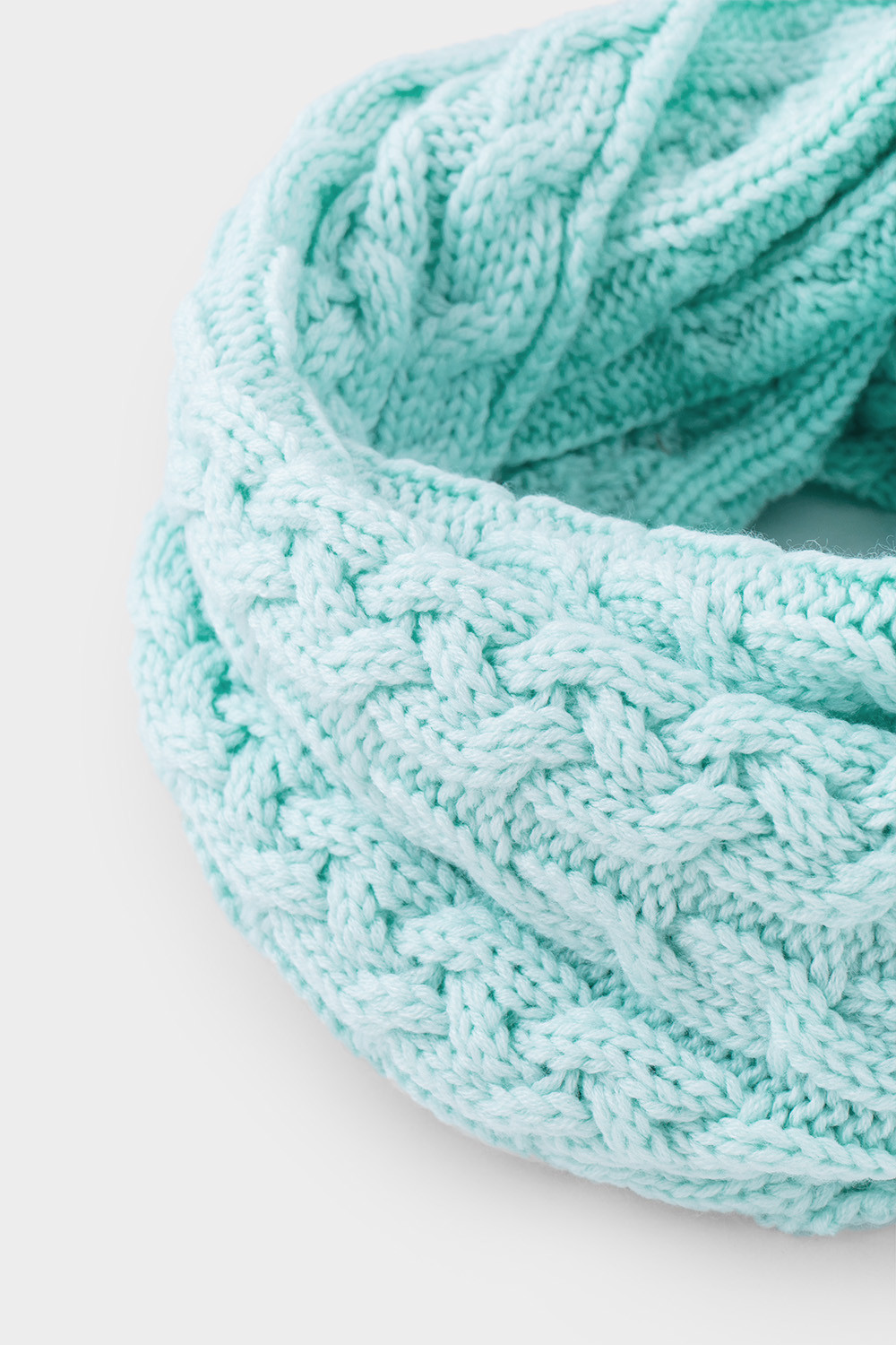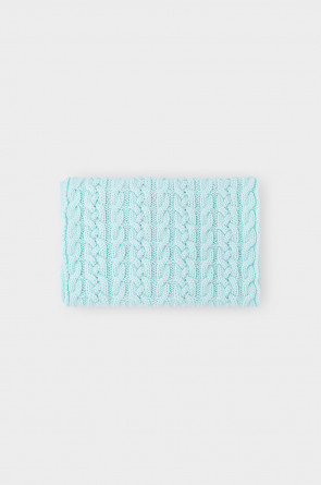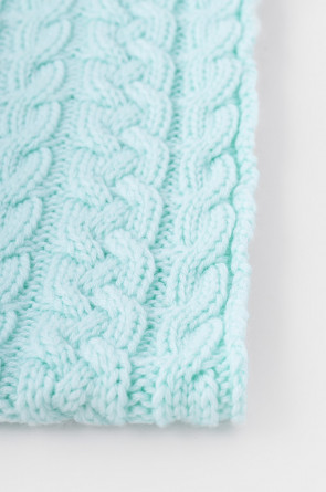 Однотонный снуд из полушерстяной пряжи для девочки, украшен вывязанными косами.