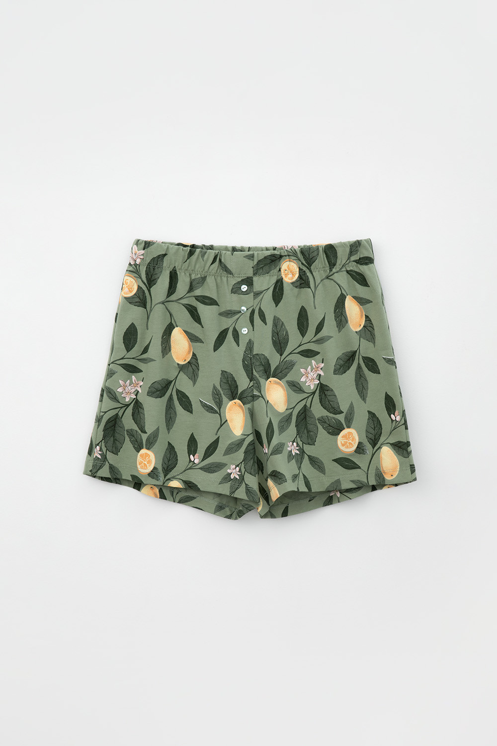 Лёгкие комфортные шорты с мягким поясом на резинке из набивного трикотажа. Гладкий материал приятен к телу, не теряет форму и позволяет коже дышать.