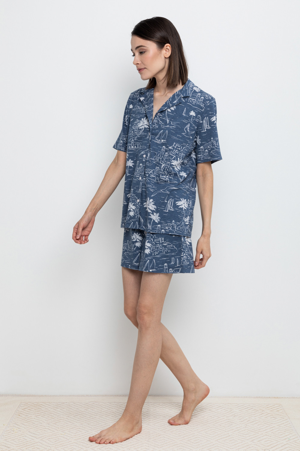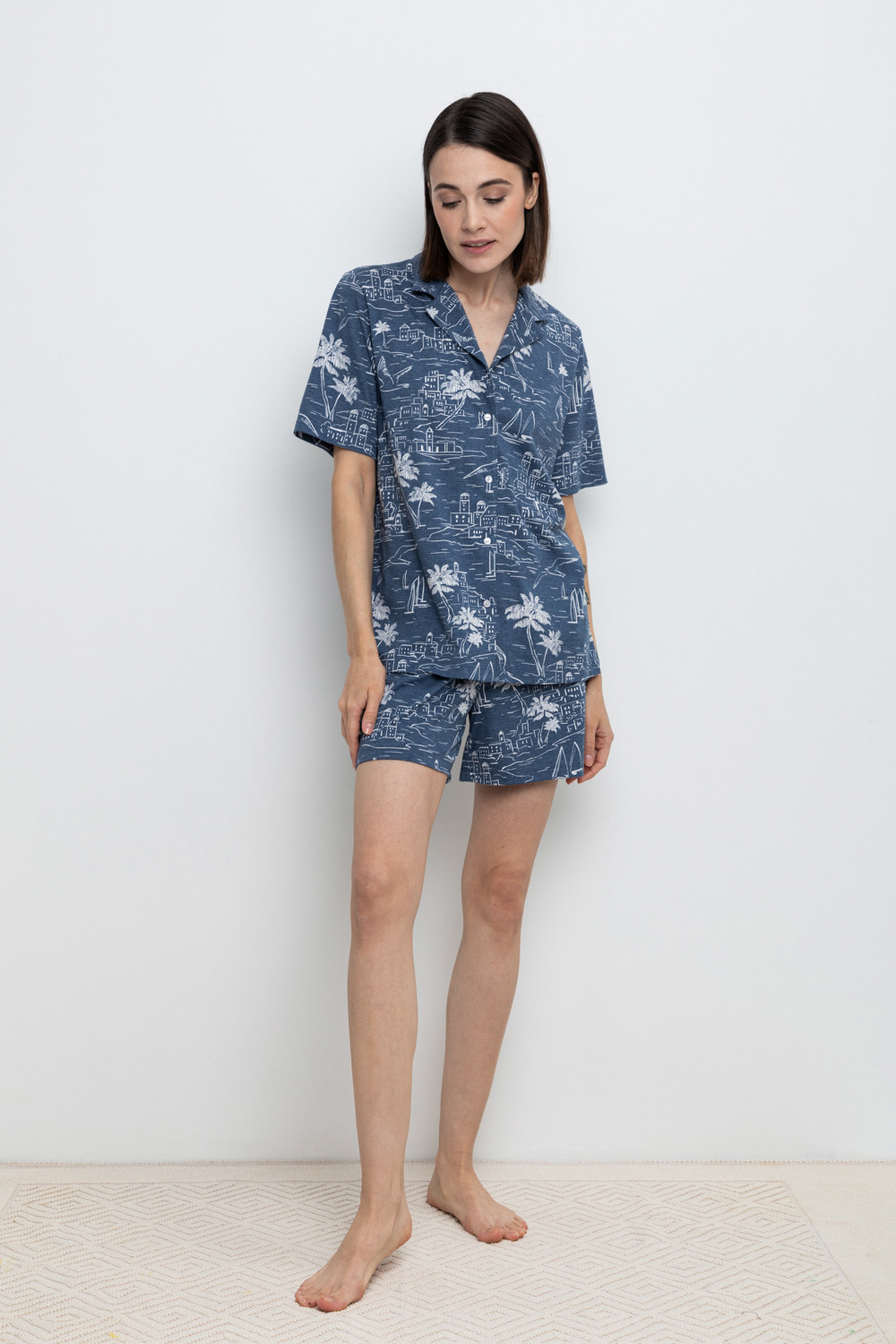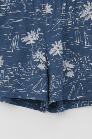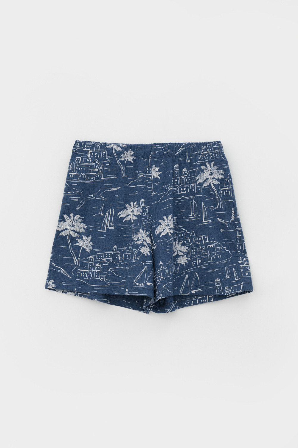 Лёгкие комфортные шорты на резинке из набивного меланжевого трикотажа . Низ изделия обработан плоскими швами. Гладкий материал приятен к телу, не теряет форму и позволяет коже дышать.