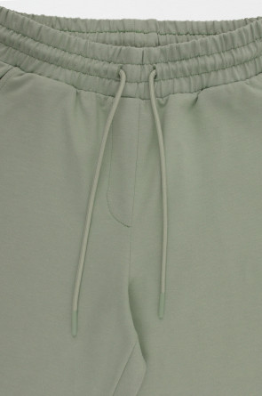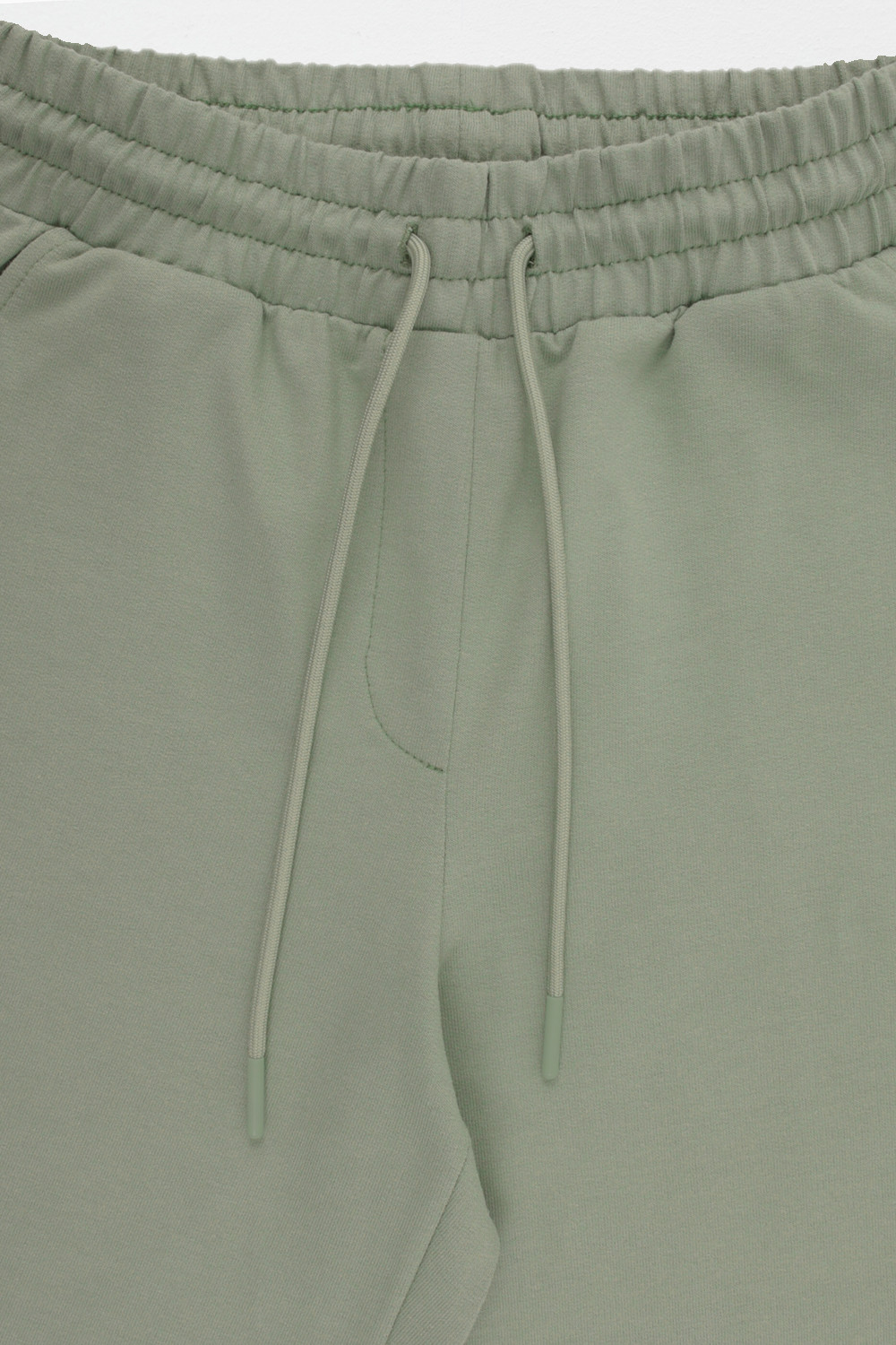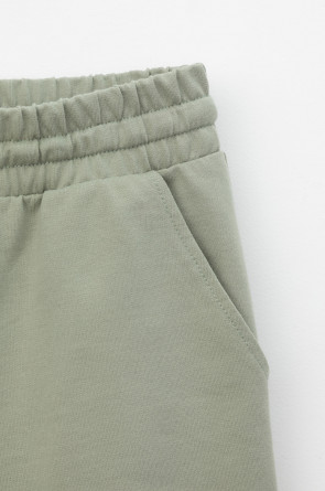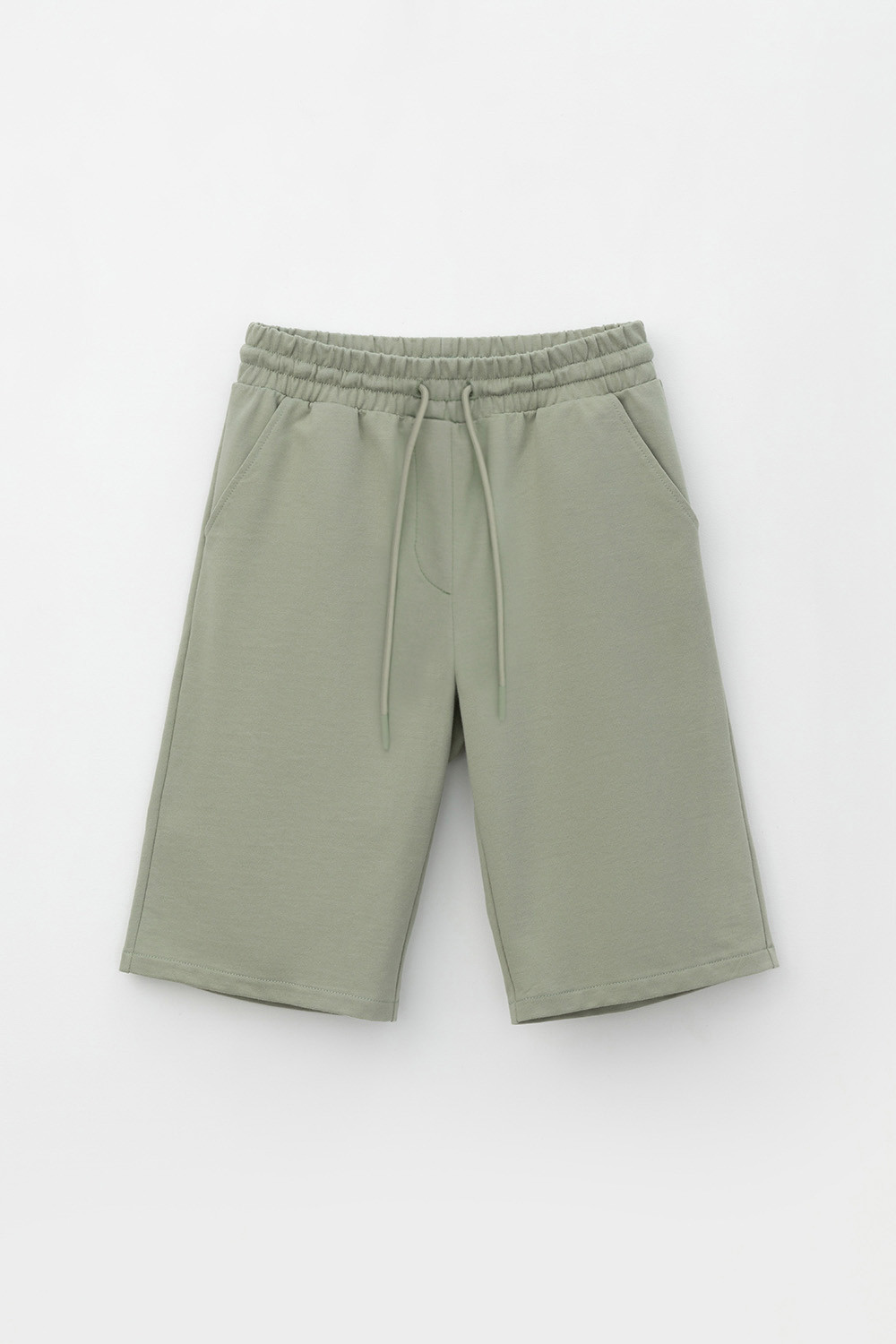 Комфортные шорты на резинке из однотонного футера петли. Регулируются по ширине с помощью шнурка. По бокам удобные карманы. Низ обработан плоскими швами.