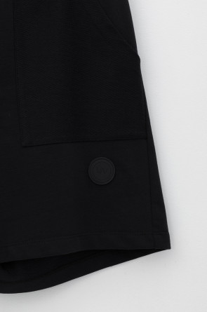Женские шорты из футера на резинке с удобными карманами наизнанку. Пояс утягивается по ширине круглым шнуром. Низ обработан плоскими швами.