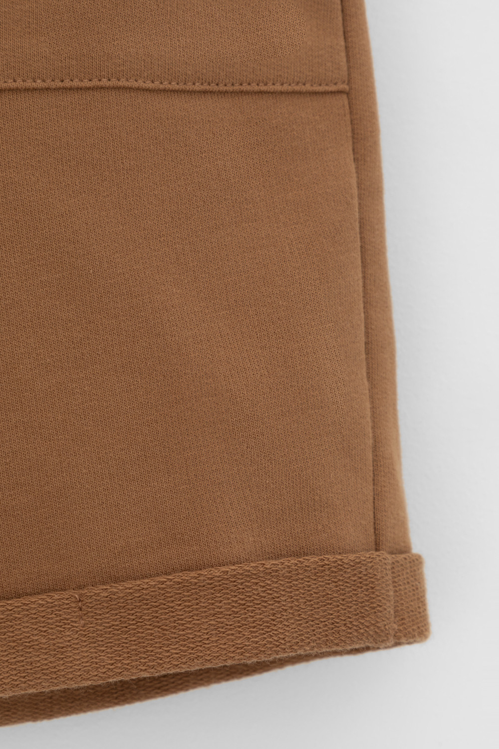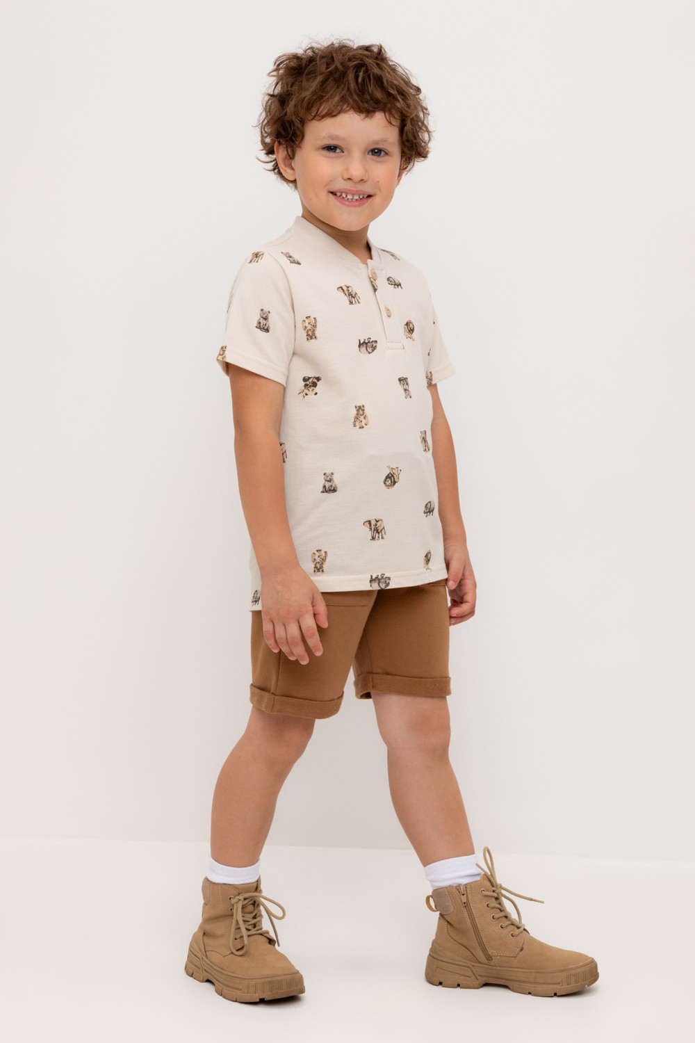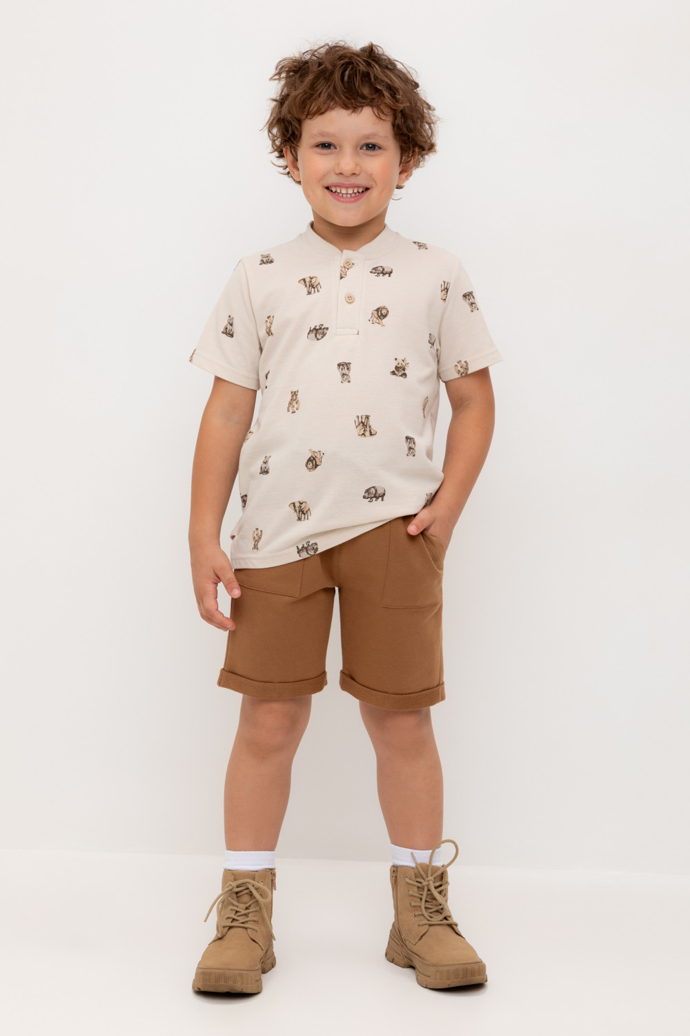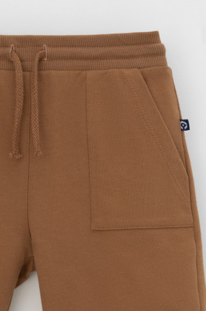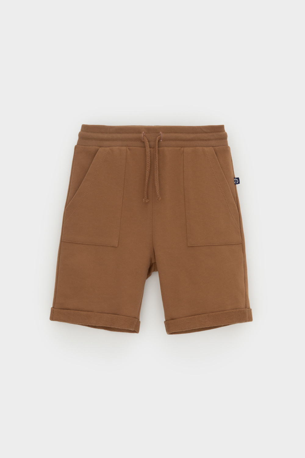Трикотажные шорты для мальчика из петельчатого футера. Эластичный пояс на резинке регулируется по ширине с помощью шнура, по бокам два удобных накладных кармана.