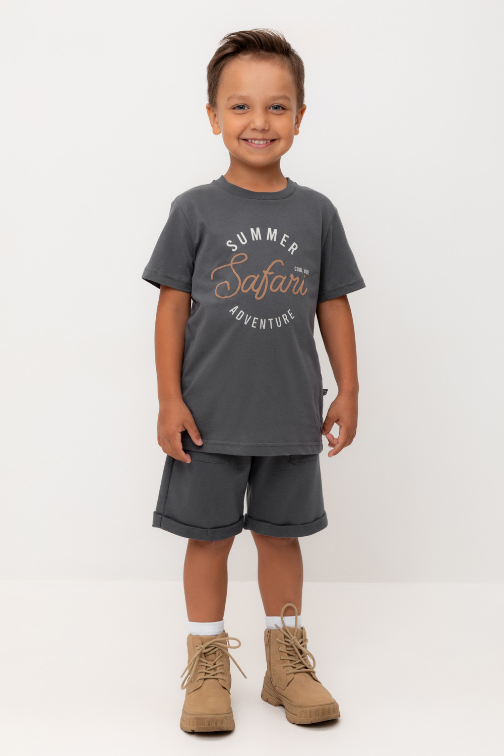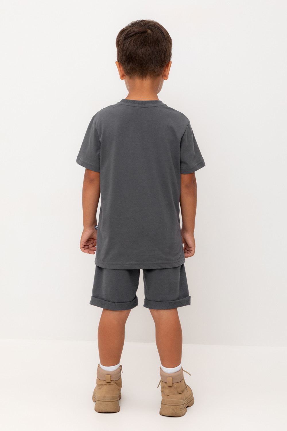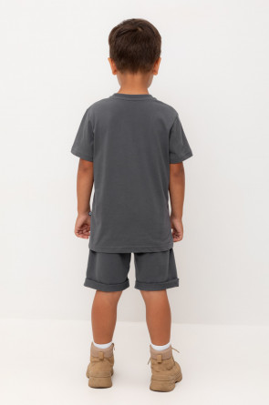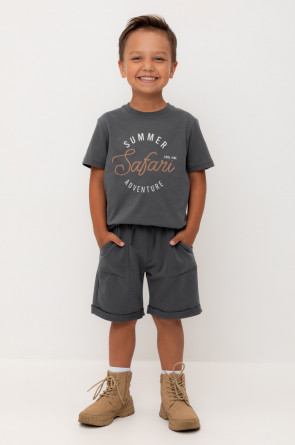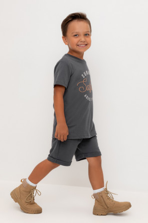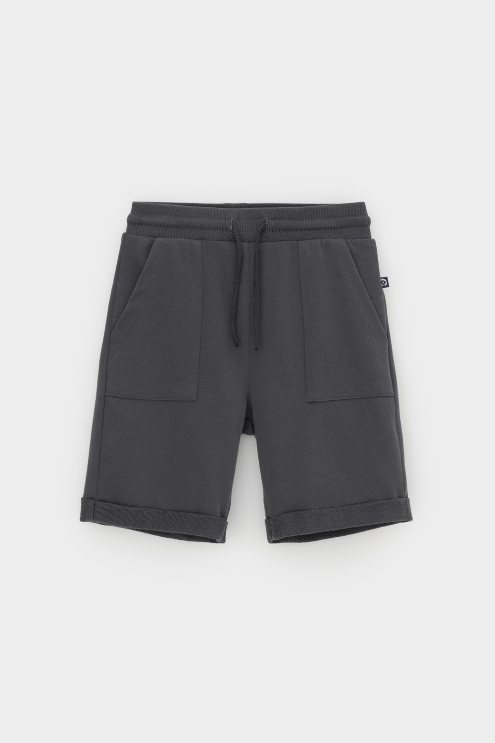 Трикотажные шорты для мальчика из петельчатого футера. Эластичный пояс на резинке регулируется по ширине с помощью шнура, по бокам два удобных накладных кармана.
