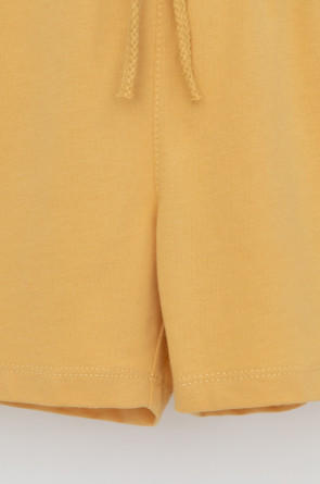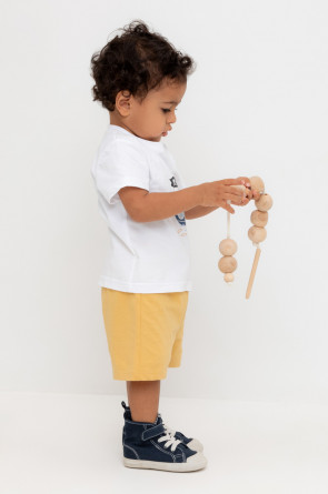 Легкие трикотажные шорты для мальчика из высококачественного хлопка. Эластичный пояс регулируется при помощи шнурка.