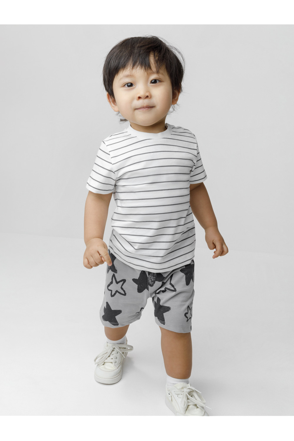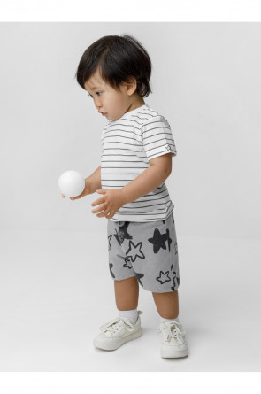 Лёгкие шорты для мальчика из гладкого трикотажа супрем. Эластичный пояс на резинке регулируется по ширине с помощью шнурка. Изделие сохраняет цвет и форму после многократных стирок. Все трикотажные полотна производятся в соответствии с нормами швейцарского сертификата ЭкоТекс.