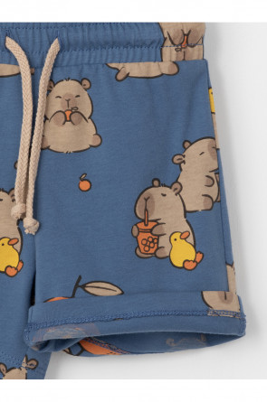 Лёгкие шорты для мальчика из гладкого трикотажа супрем. Эластичный пояс на резинке регулируется по ширине с помощью шнурка. Изделие сохраняет цвет и форму после многократных стирок. Все трикотажные полотна производятся в соответствии с нормами швейцарского сертификата ЭкоТекс.