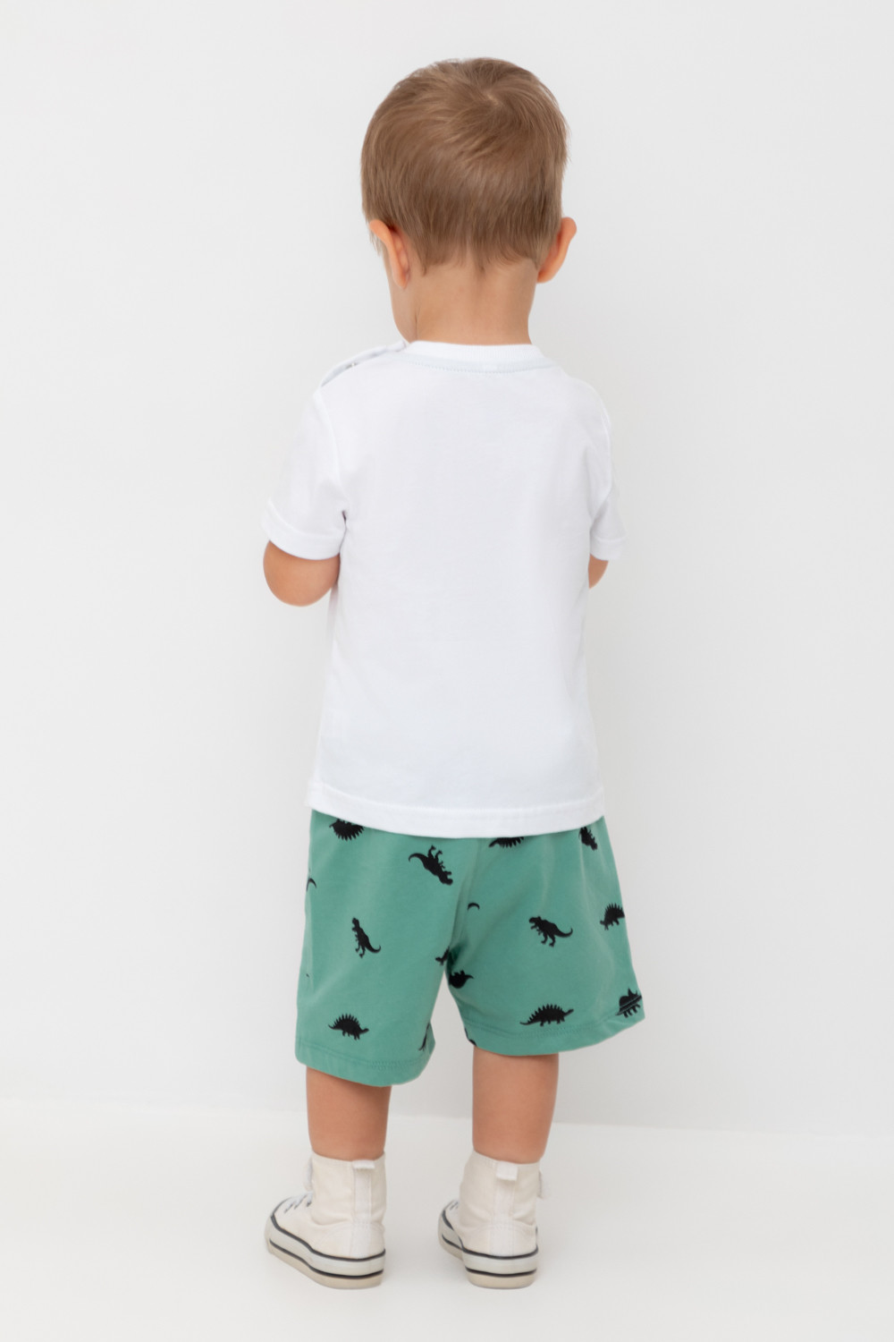 Легкие трикотажные шорты для мальчика из высококачественного хлопка. Эластичный пояс регулируется при помощи шнурка.