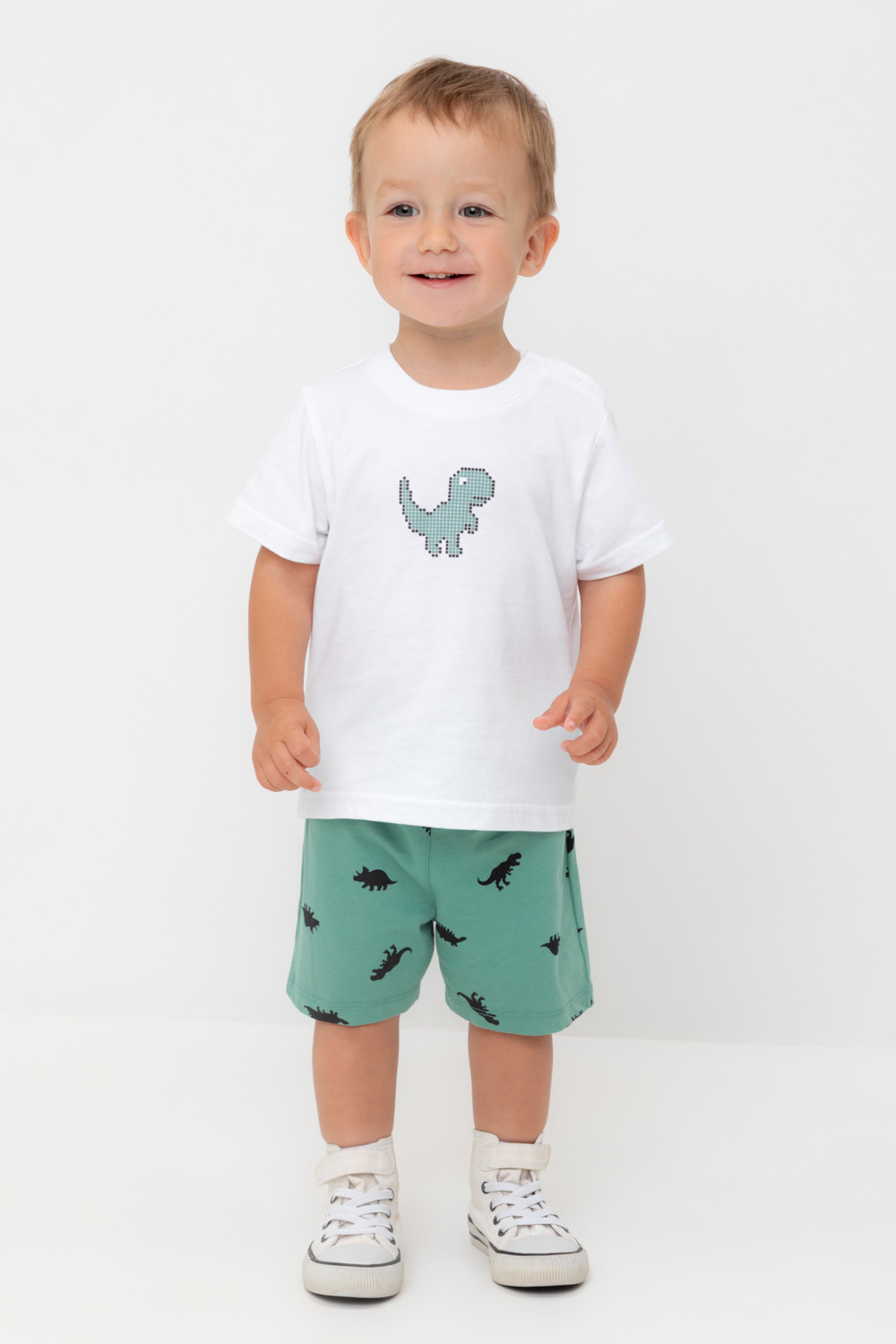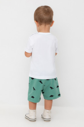 Легкие трикотажные шорты для мальчика из высококачественного хлопка. Эластичный пояс регулируется при помощи шнурка.