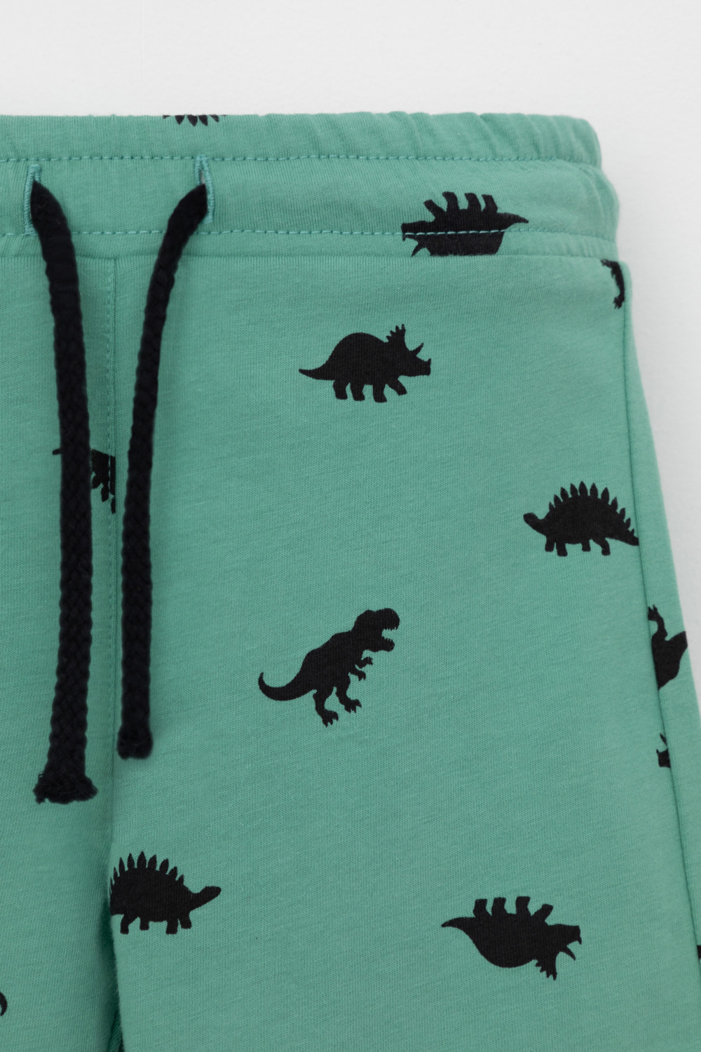 Легкие трикотажные шорты для мальчика из высококачественного хлопка. Эластичный пояс регулируется при помощи шнурка.