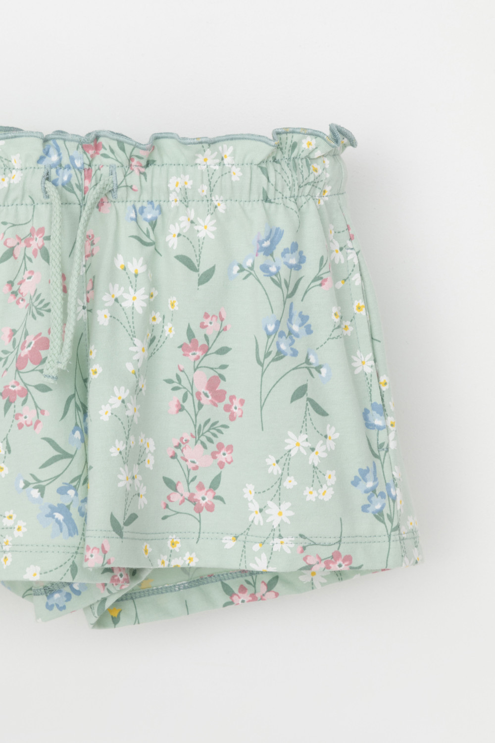 Легкие трикотажные шорты для девочки из высококачественного хлопка. Эластичный пояс регулируется при помощи шнурка.